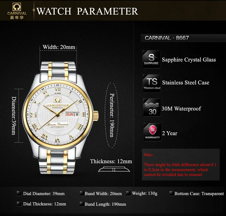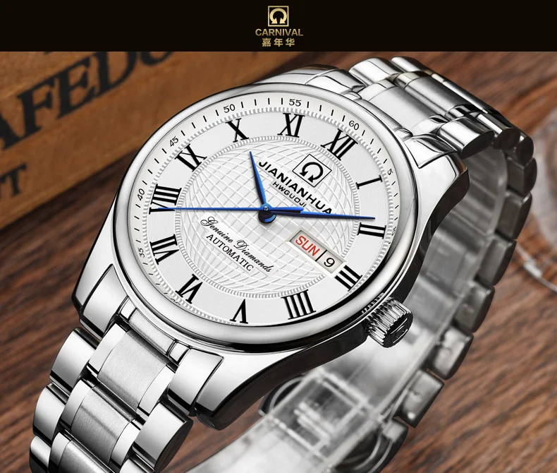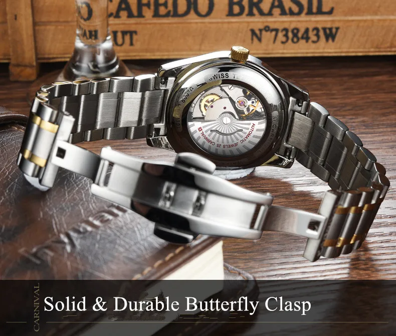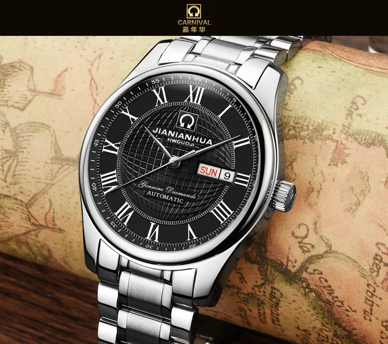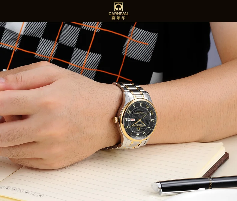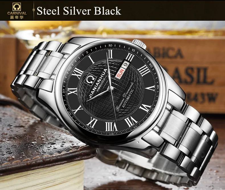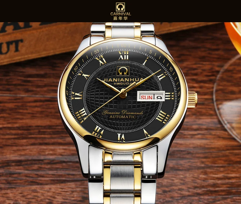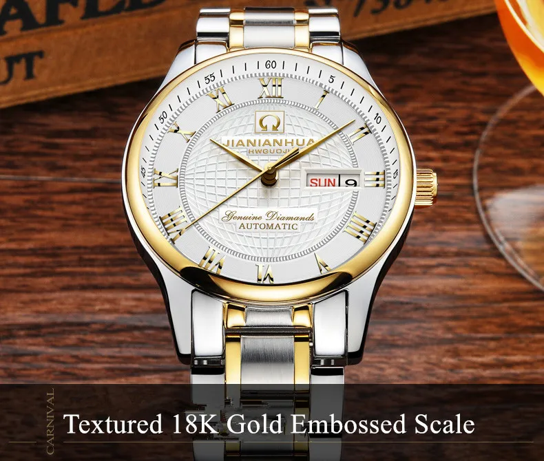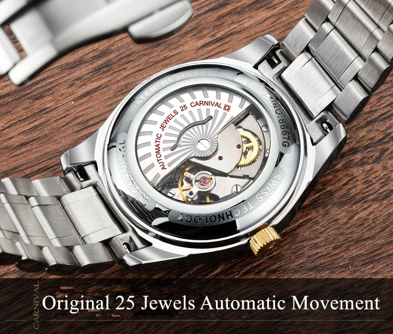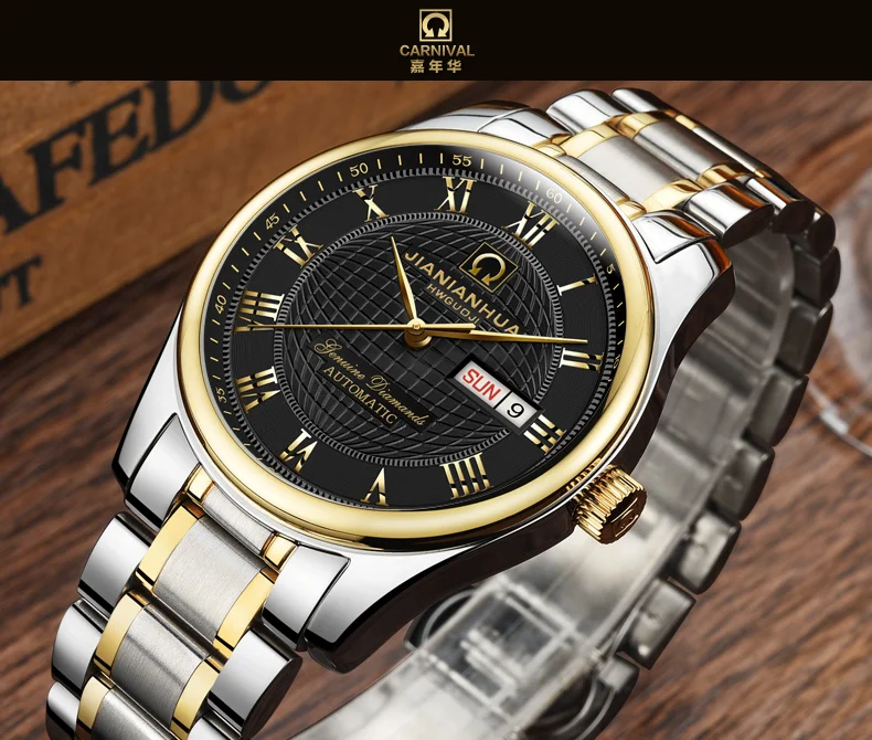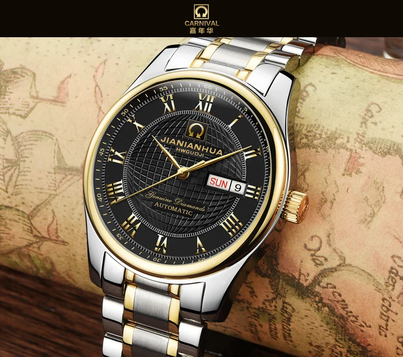 Карнавал бренд военные часы модные роскошные водонепроницаемые золотые платья автоматические механические часы для мужчин часы Relogio Masculino