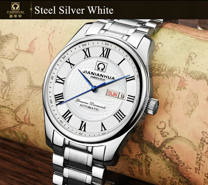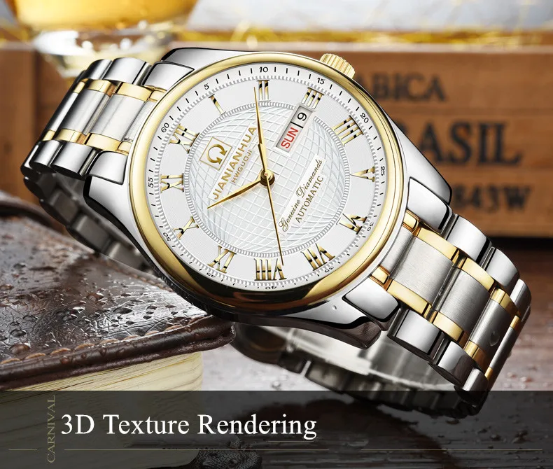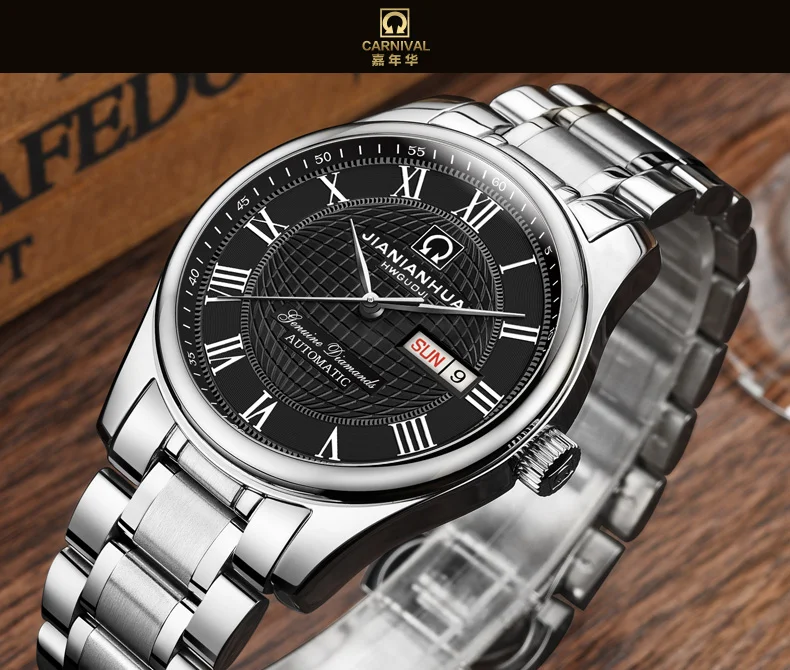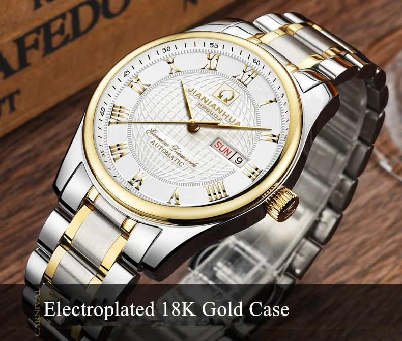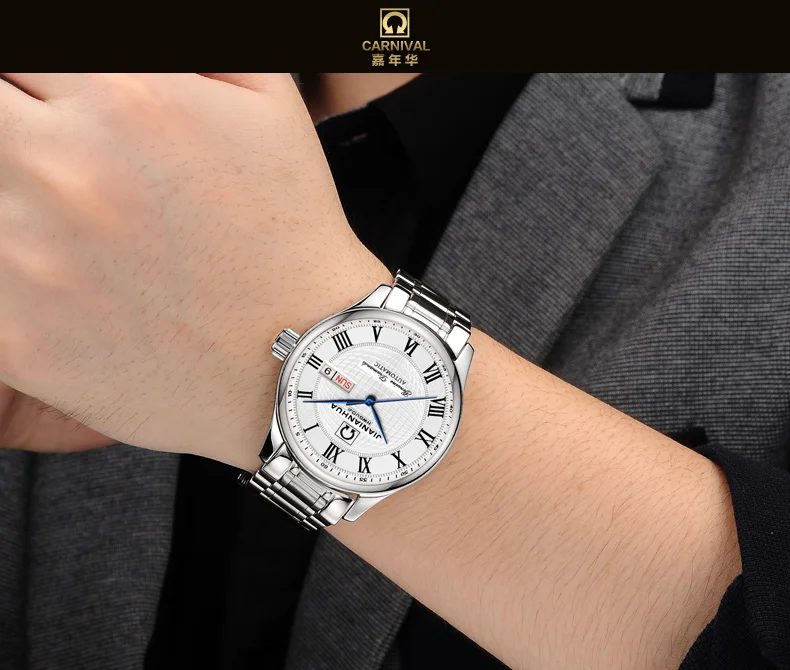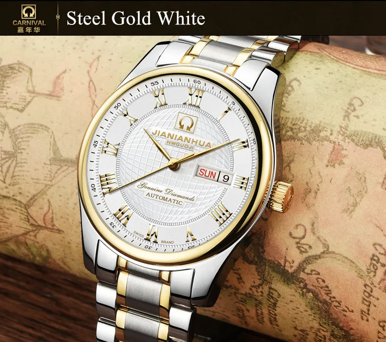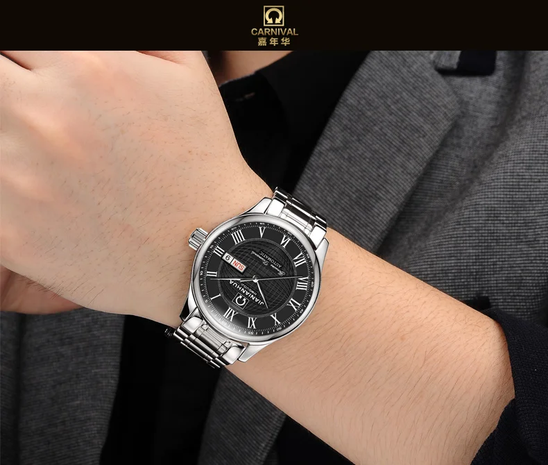 Карнавальный бренд Золотые деловые автоматические часы мужские модные роскошные водонепроницаемые часы с календарем механические наручные часы 2021 Relogio Masculino