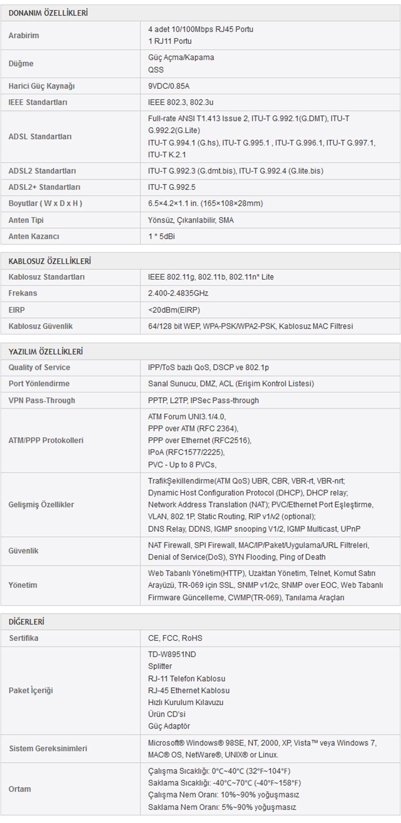 Что это за товар? TD-W8951ND 150Mbps беспроводной N ADSL2 + модем роутер широкополосное подключение к Интернету Проводная/Беспроводная сеть через Среднюю и среднюю до paylazyrmanizi разработанное интегрированное устройство. Компакт-диск в простом программном обеспечении, SPI и NAT брандмауэре, qoS engine и других передовых функций с паролем безопасности беспроводной сети легко создать; Серфинг Интернет, обмен файлами, VOIP, передача аудио и изображений будет hemen can. Интегрированный высокоскоростной DSL модем, 4 порта 10/100 Мбит/с маршрутизатор NAT и беспроводной N поддерживает Pointin, включающий интегрированное решение. TD-W8951ND, DSL поддерживает телефонную линию с помощью высокоскоростного a ADSL2 + Интернет-соединения. После установки обеспечивается подключение к Интернету между устройствами через проводную или беспроводную сетевую среду; Мультимедийный доступ, Интернет для серфинга, hd-видео дисплей, такие практики. Время и Экономьте деньги! Многие устройства, покупая время для каждого, устанавливайте harcayaca③, все в одном продукте на выбор. Ваша рабочая зона, которую вы сохраняете!