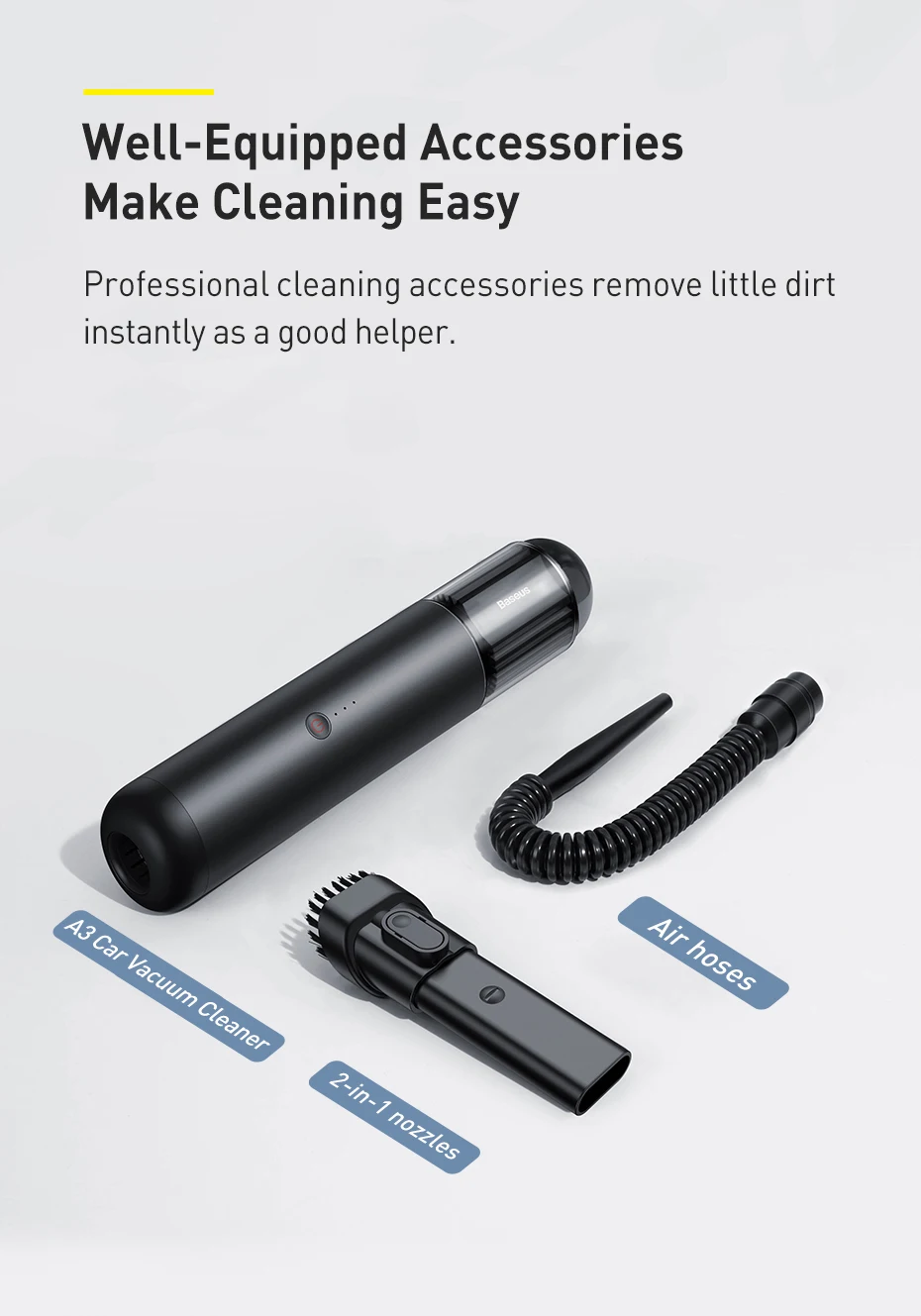 Нажмите и удерживайте кнопку питания в течение 3 секунд, чтобы включить светильник, чтобы четко осветить темные углы и зазоры в автомобиле для тщательной очистки.