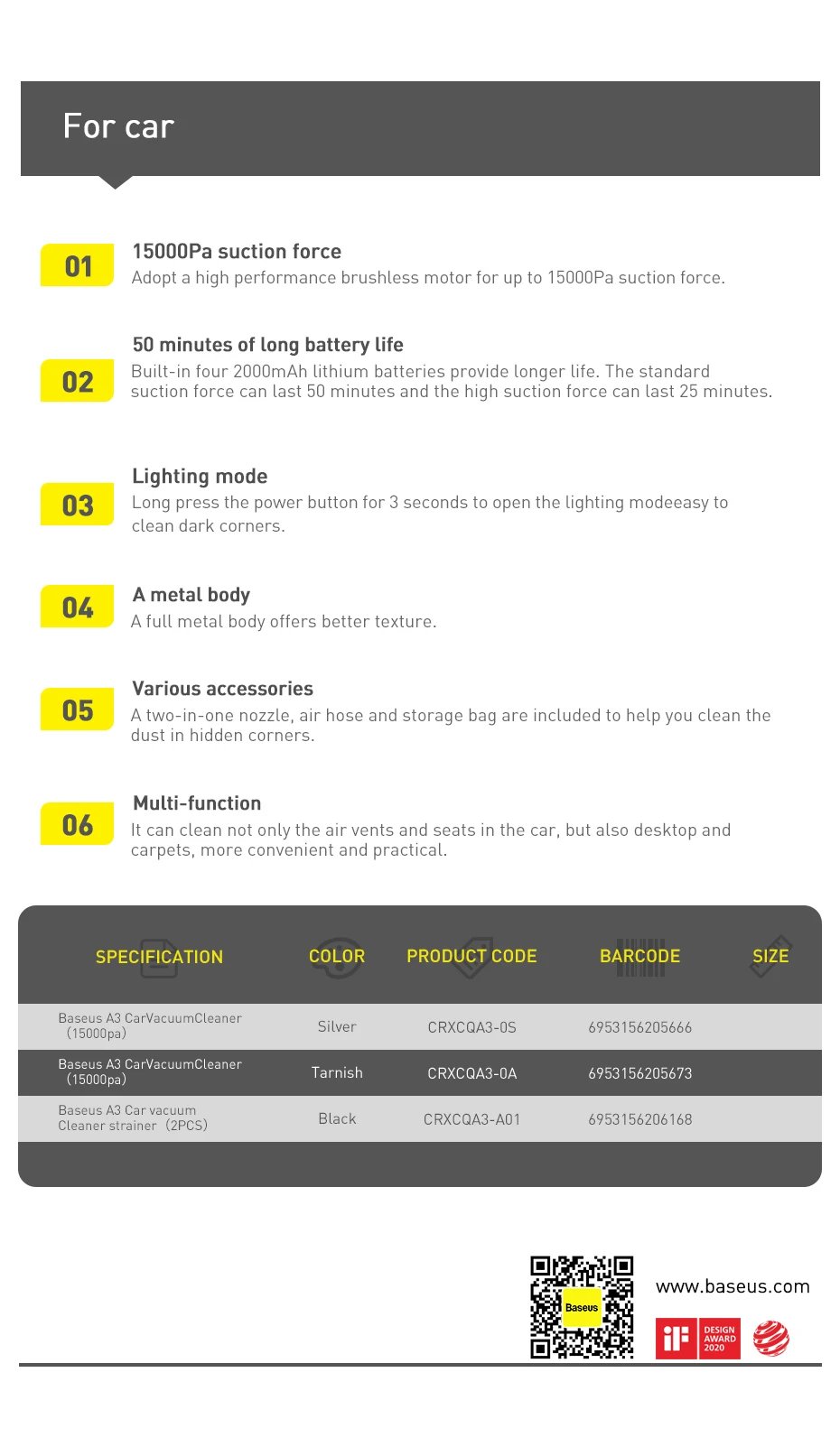 Бесщеточный двигатель 80000 об/мин позволяет беспроводным пылесосам больше не слаб. Отсутствие потери угольной щетки повышает эффективность очистки. Металлические лезвия с турбонаддувом 15000 ПА тщательно удаляют Нагар, волосы и остатки.