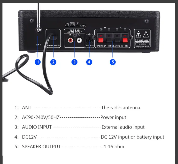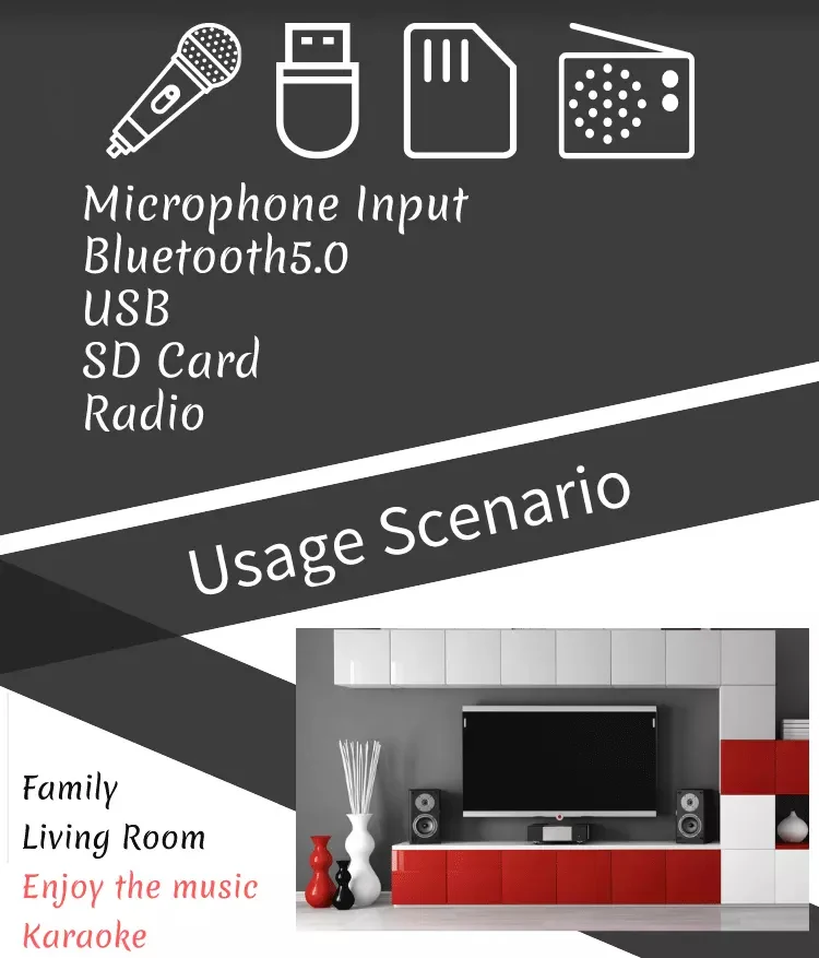 Чип TDA7377 имеет полностью дополняющую выходную сценическую структуру и внутренний фиксированный коэффициент усиления, что гарантирует, что усилитель Kinter-018 не будет искажен при высокой выходной мощности, а периферийные компоненты очень малы. Упрощена работа подключения с кардридером TF / SD.