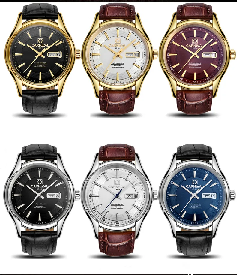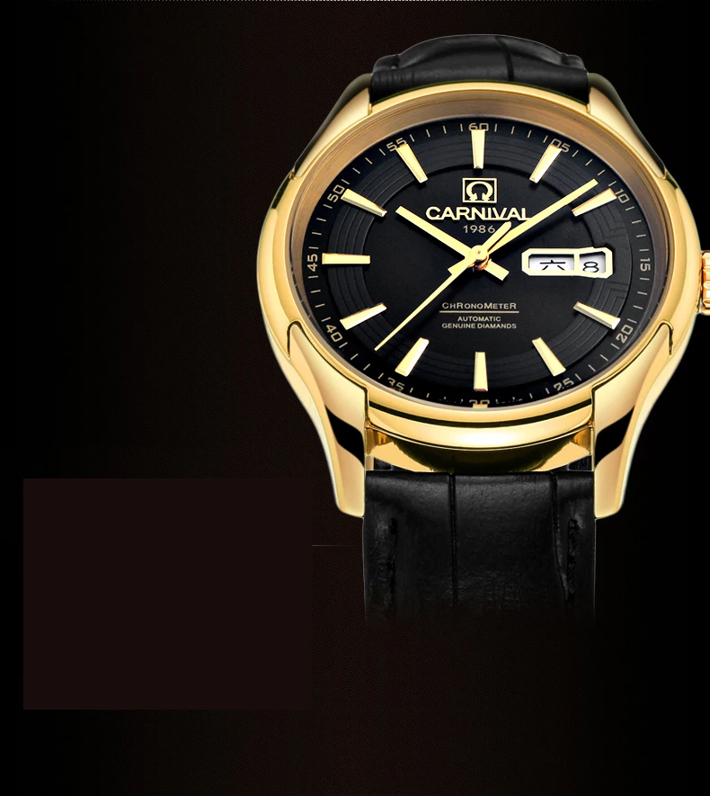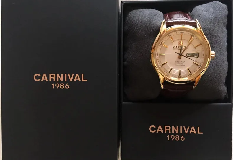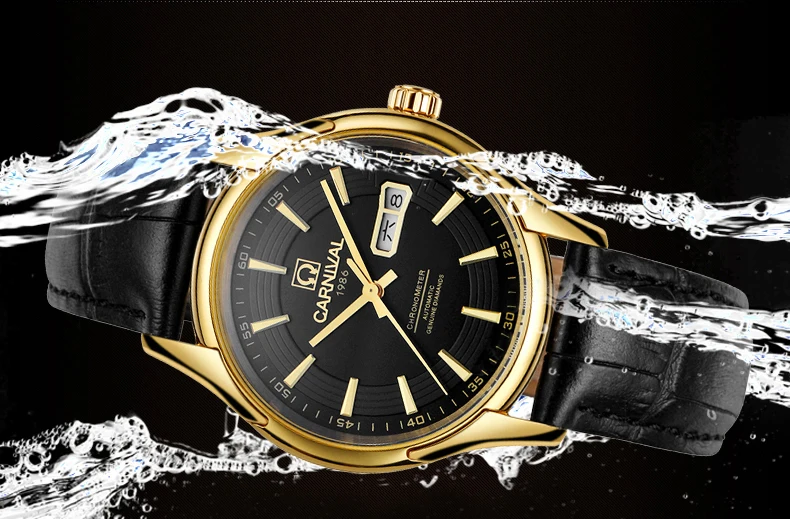 Карнавал бренд военные часы Модные Роскошные Водонепроницаемые Календарь автоматические механические наручные часы для мужчин часы Relogio Masculino