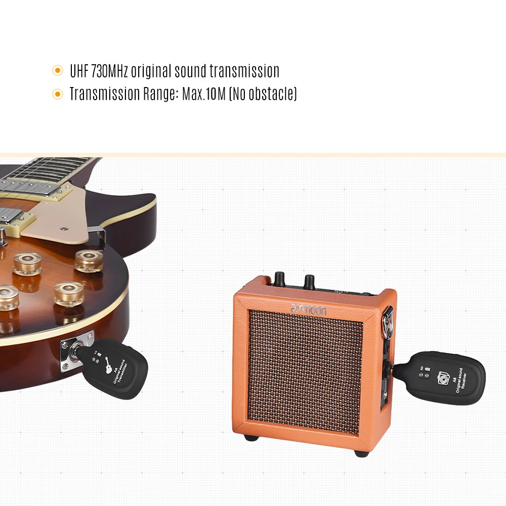 Эта беспроводная гитарная система использует цифровую технологию радиочастотной передачи UHF для избавления от кабеля, расстояние передачи составляет до 50 метров без помех, вам предоставляется свобода бродить по сцене для действительно динамичного представления.