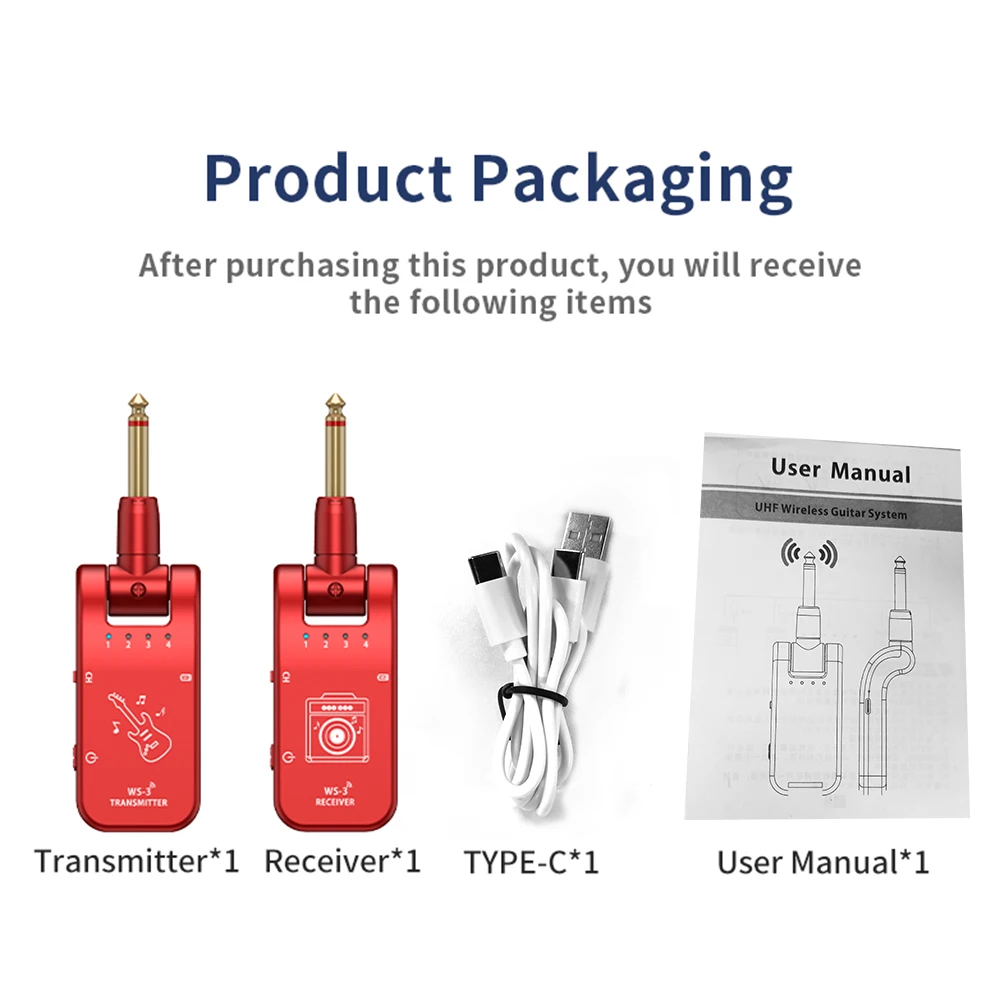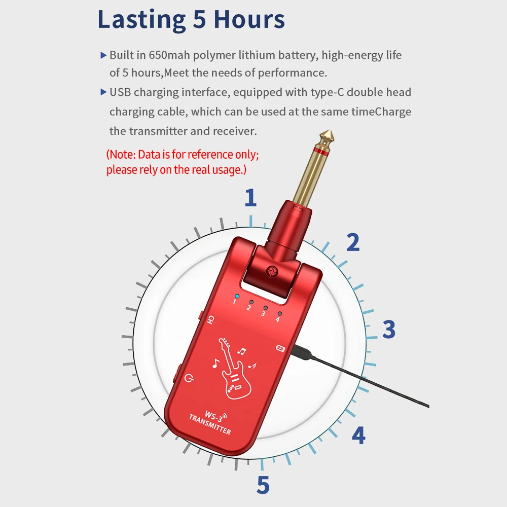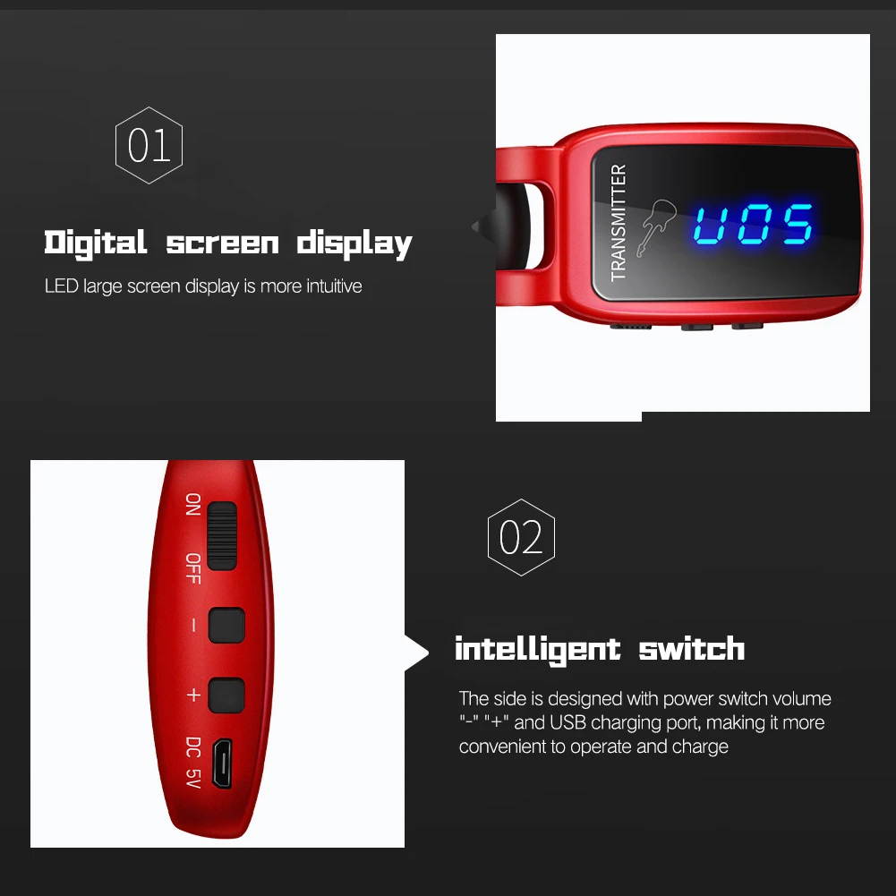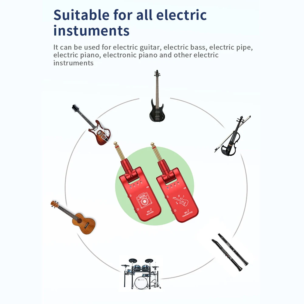 Беспроводная аудиосистема используется для электрогитары, бас, Духового Инструмента, скрипки, фортепиано, барабана и других электрических музыкальных инструментов.