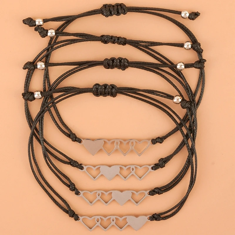 Sisters Card Bracelet European and American Creative Stainless Steel Heart-shaped Braided Bracelet 4-piece Set