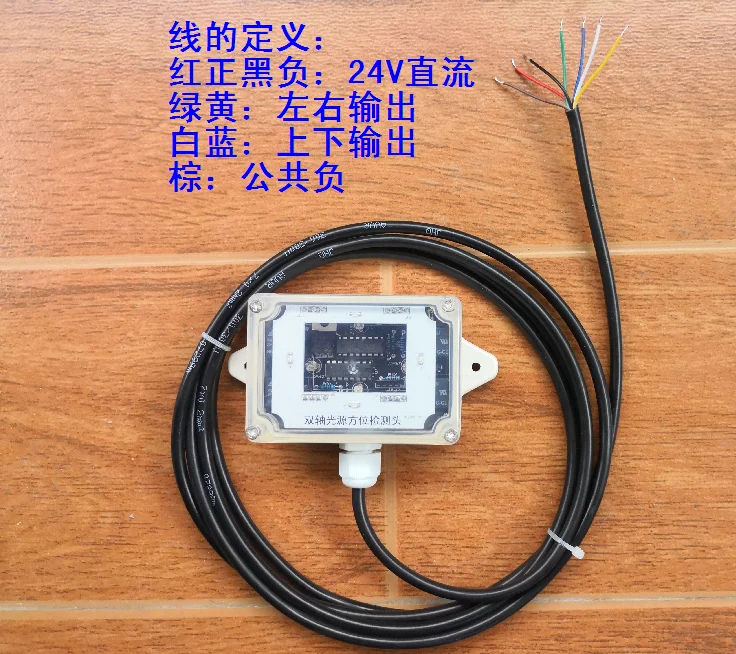 Описание свинца: красный и черный: 24 в источник питания положительный и отрицательный. Коричневый: общественный негативный. Зеленый и желтый: левый и правый выход. Белый и синий: вверх и вниз выход. Выходной высокоуровневый ток нагрузки этой головки обнаружения не может быть больше 200 мА. Компания оставляет за собой право изменить параметры без уведомления.