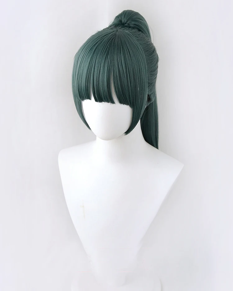Аниме Jujutsu Kaisen Косплей Maki Zenin Парики Темно-зеленый конский хвост Жаростойкие синтетические волосы косплей парик + парик шапка + очки