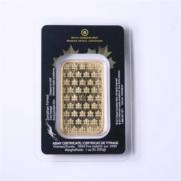 1 унция Канадский кленовый лист золотой бар, позолоченная герметичная упаковка с индивидуальным серийным номером Реплика