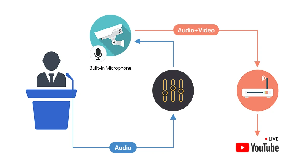 Вы можете транслировать видео с этой камеры на Youtube, и видео, и аудио будет транслироваться.