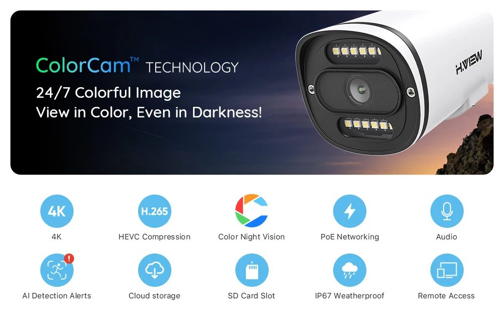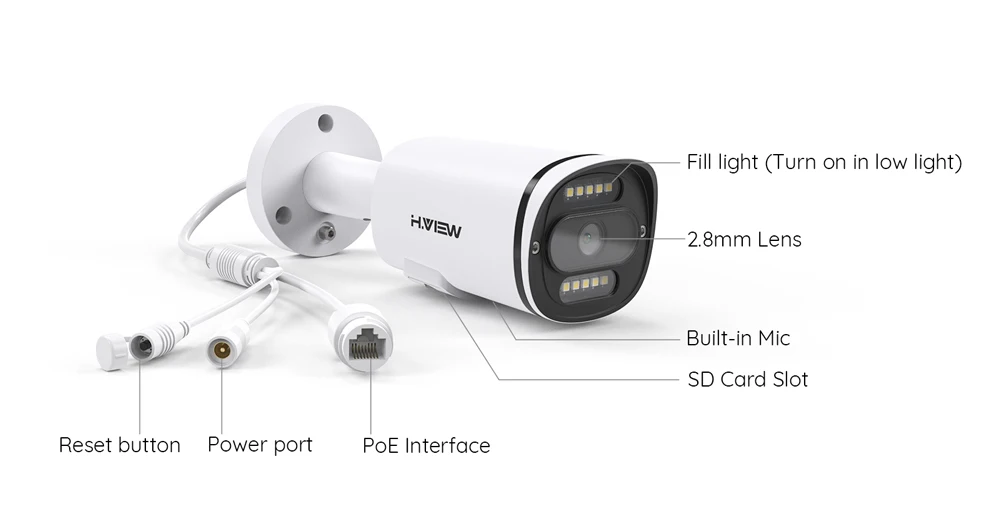 H.View 4K Ultra HD POE ip-камера имеет разрешение пикселей 3840x2160, доставка более высокого качества изображения. Лучше в деталях.