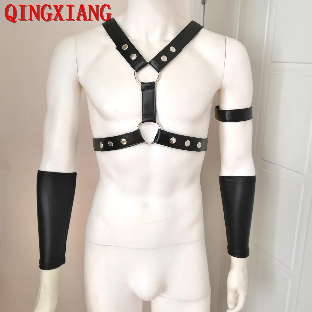 4 шт., новинка 2021, сексуальный мужской черный ремень из искусственной кожи, одежда для ночного клуба, бандажные майки из ПВХ, Эротическое нижнее белье DS, топ, тройники, комплект