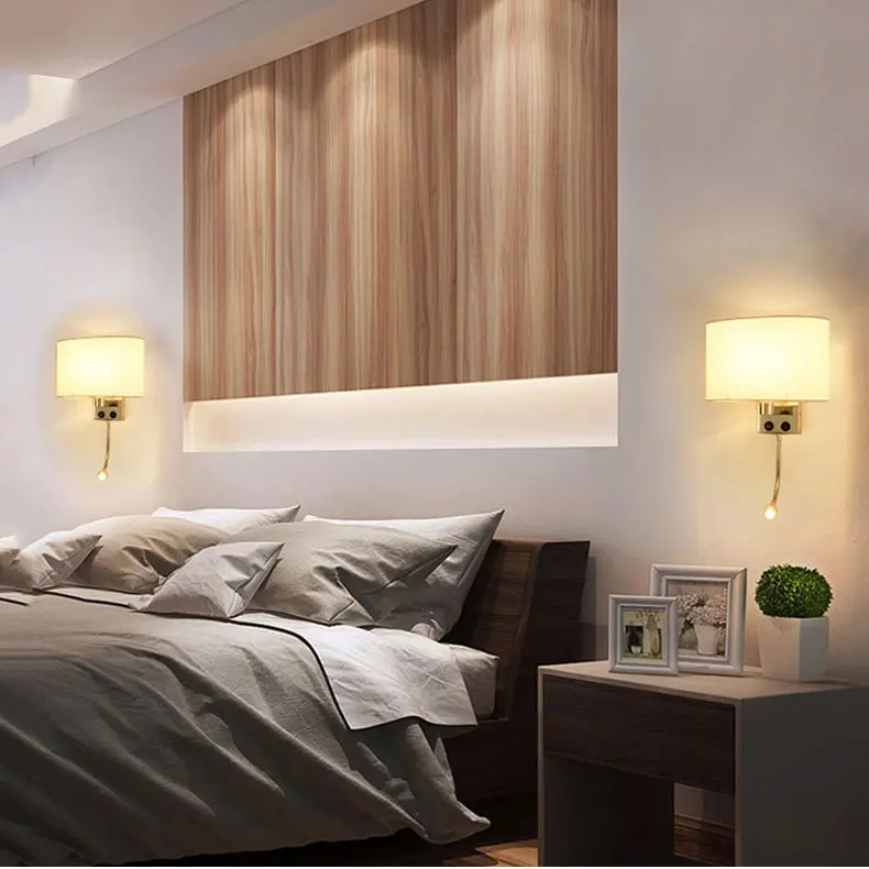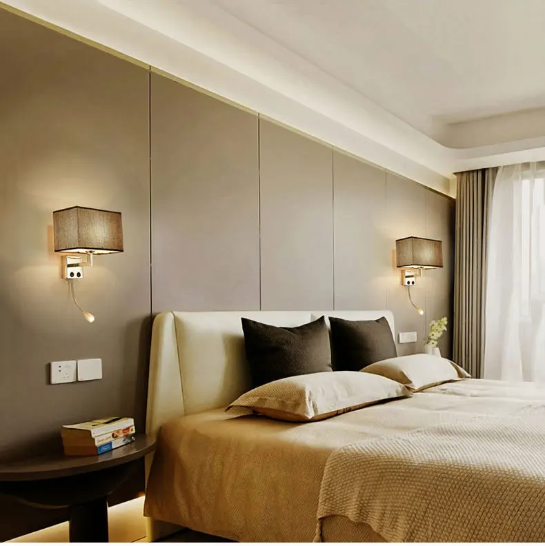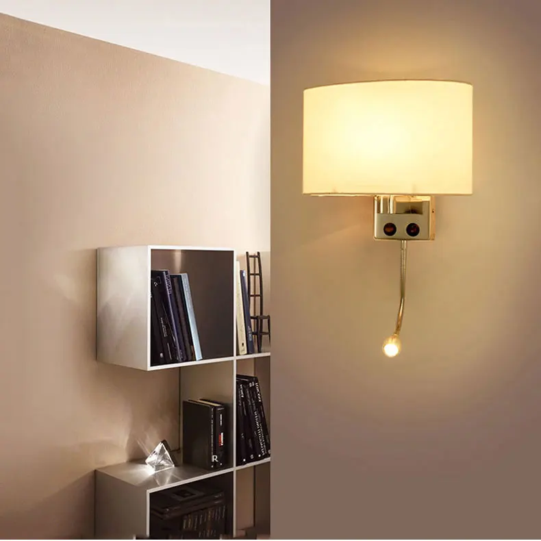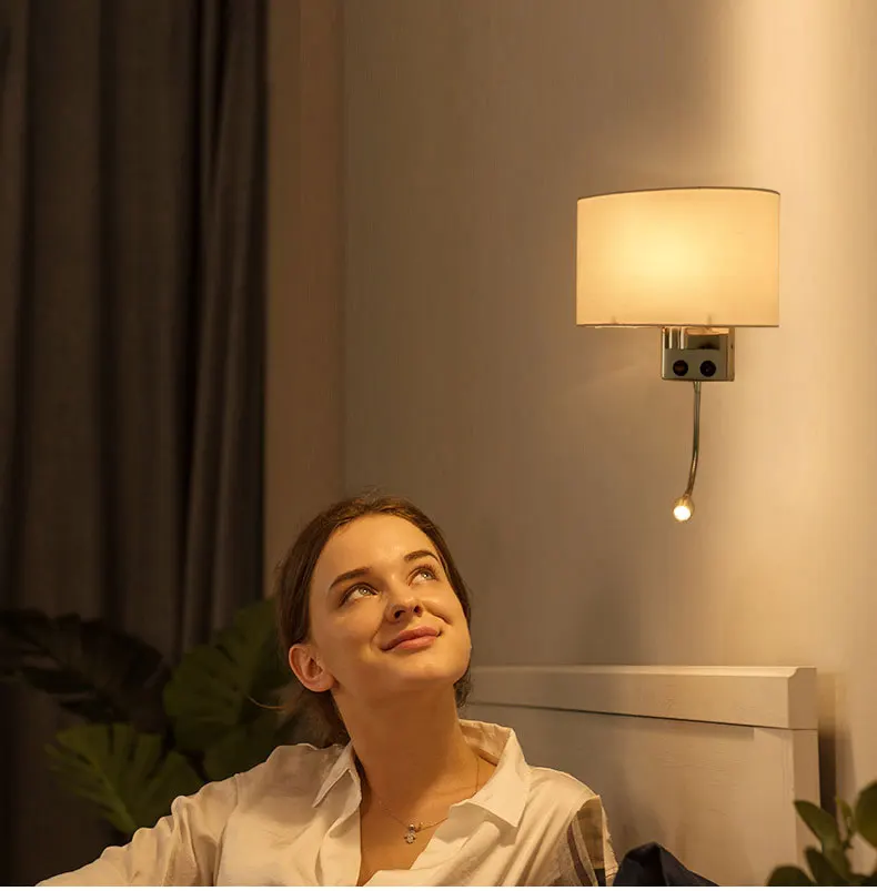 Импульсный тканевый светодиодный настенный светильник для гостиной, спальни, прикроватная лампа из нержавеющей стали E27, светодиодный настенный светильник, светильник для чтения