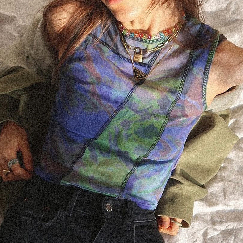 YiYiMiYu/Винтажные свободные топы, летние модные Универсальные повседневные геометрические открытые наряды Y2K, прозрачные Вязаные РубашкиUS $14,25