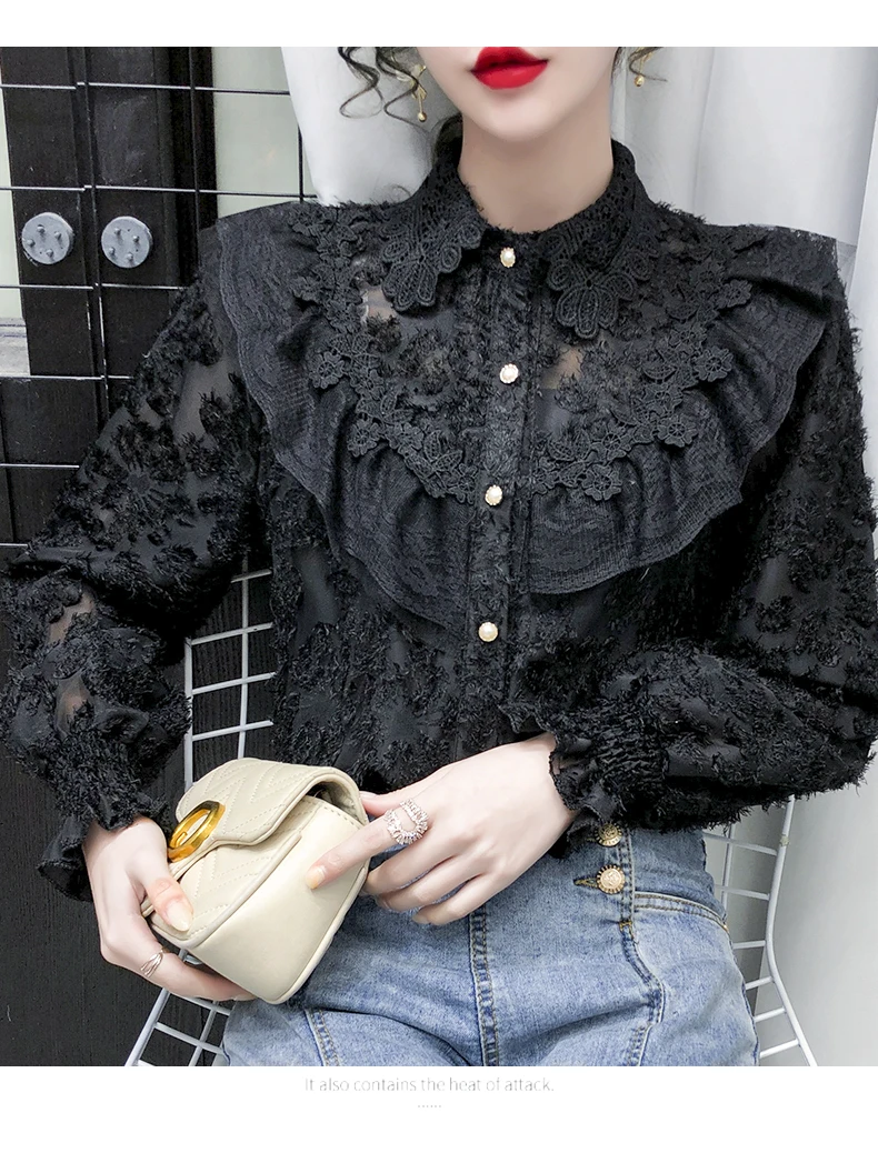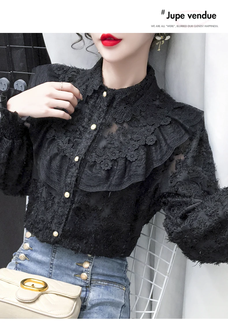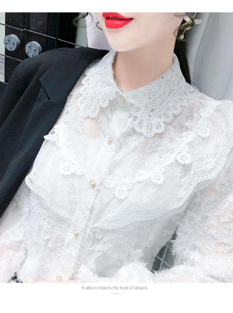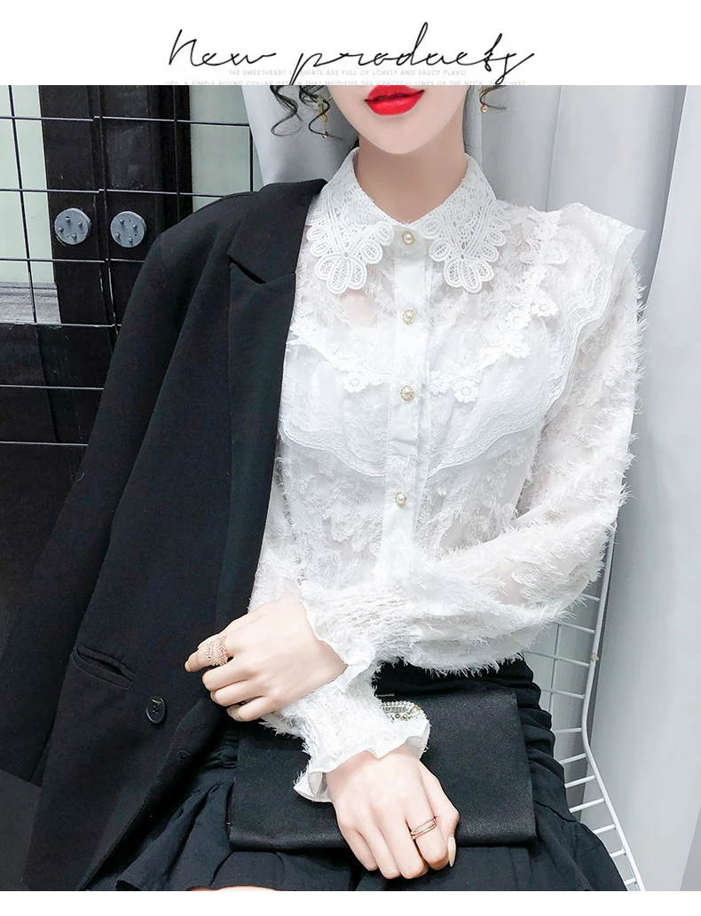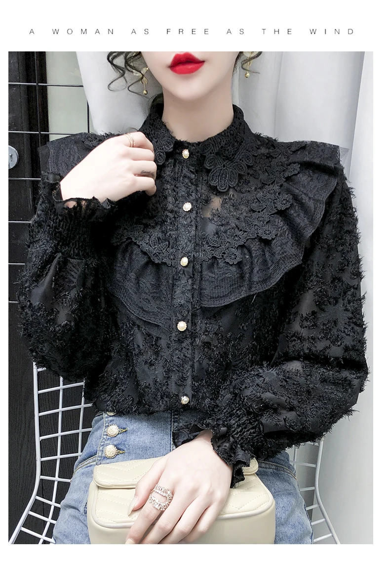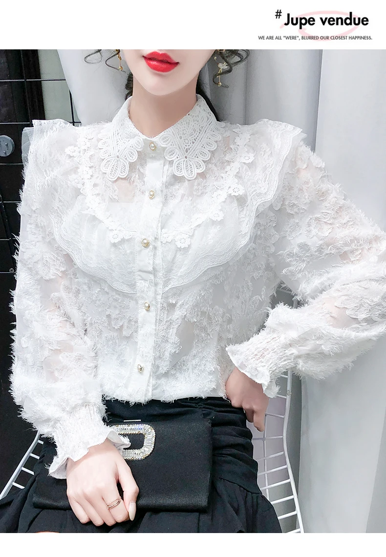 Осенне-весенние свадебные рубашки женская блузка элегантная винтажная кружевная Дворцовая стильная французская офисная рубашка с длинным рукавом Готическая Рубашка В Стиле Лолита