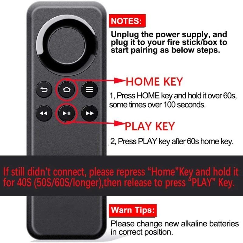 3) Если это не удалось, вам, возможно, придется несколько раз отключать Fire TV Stick/Fire TV Box, чтобы подключить его, но он должен работать нормально, все пульты были протестированы перед отправкой.