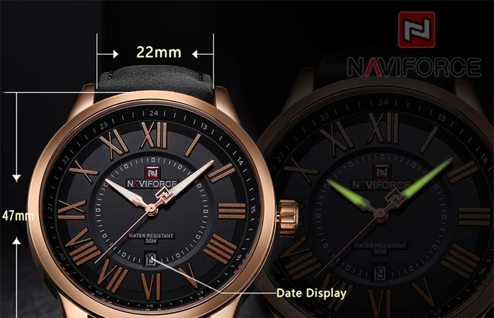 ОписаниеИнформация о продукте Описание 100% новые и высококачественные Мужские часы для отдыха Отображение даты и часов Водостойкий Японский кварцевый механизм Технические характеристики Материал корпуса: нержавеющая сталь Чехол Диаметр: 47 мм Чехол Толщина: 14 мм Материал ремешка: натуральная кожа Длина ремешка (включая чехол): 250 мм Ширина ремешка: 22 мм Вес изделия: 71 г Что входит в комплект 100% Новый бренд 1 x мужские часы Naviforce Leisure design с датой