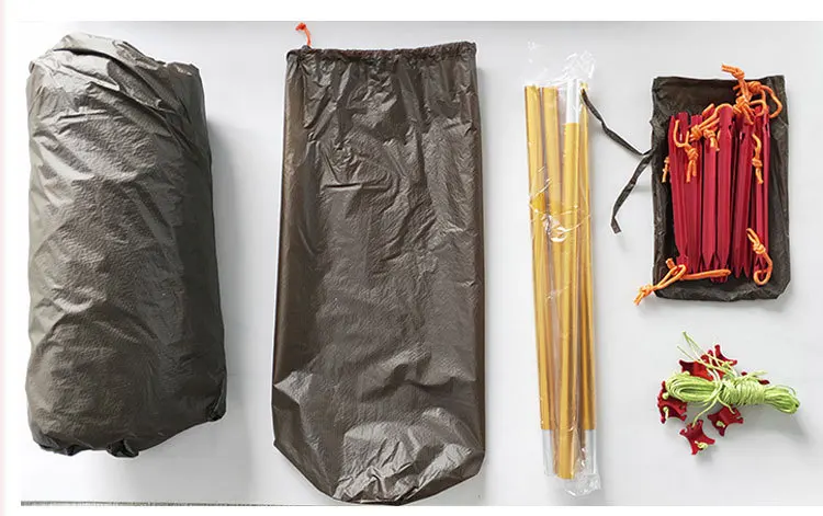Посылка: сумка для хранения * 1, Палатка * 1, ветровая веревка * 1, гвозди из алюминиевого сплава * 6
