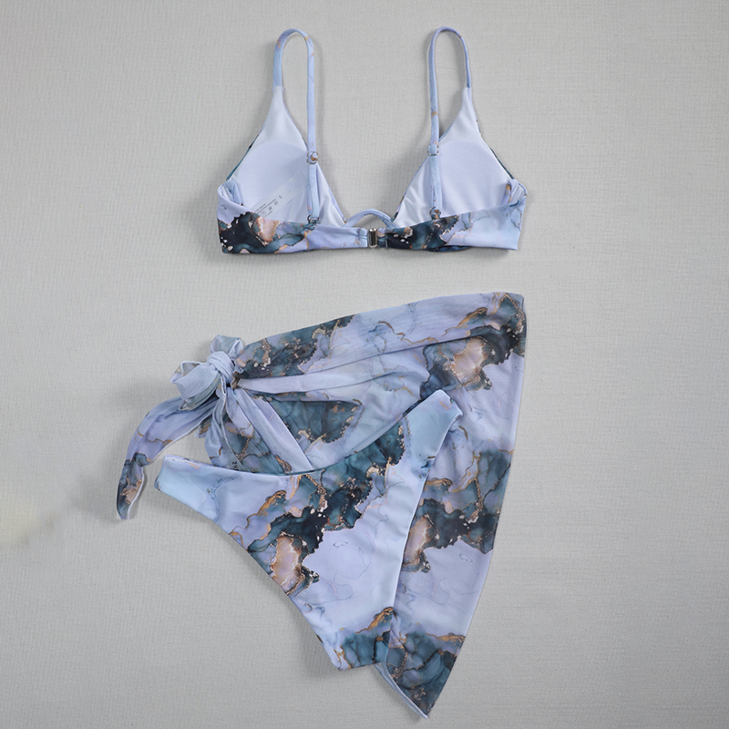 Женский купальник из трех предметов с принтом, бюстгальтер на косточках + трусики + юбка с запахом