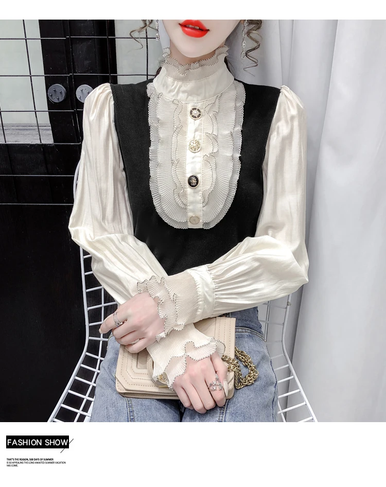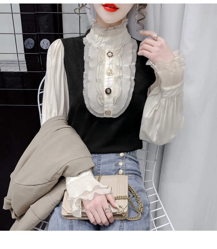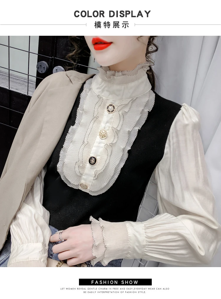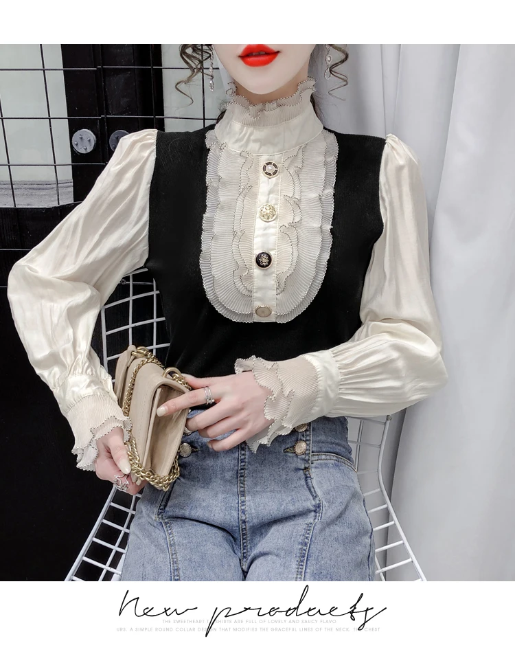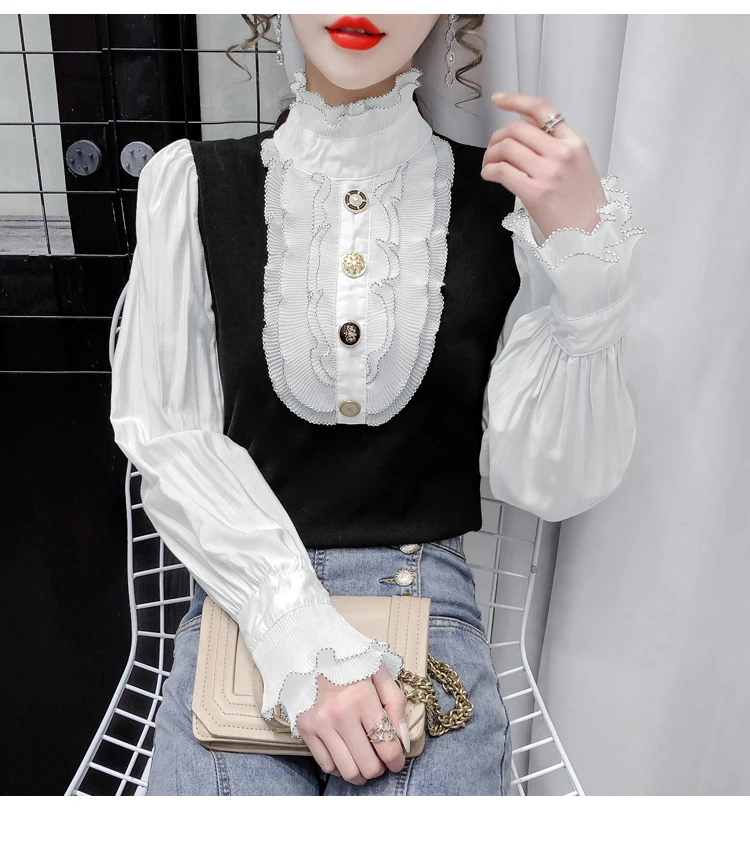 Женская блузка в стиле стимпанк, средневековая рубашка в готическом стиле, французская блузка с длинным рукавом и воротником-стойкой в викторианском стиле