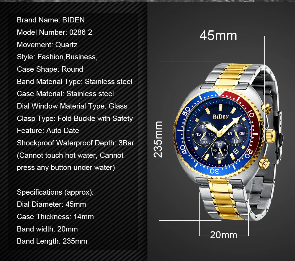Модные военные кварцевые часы BIDEN