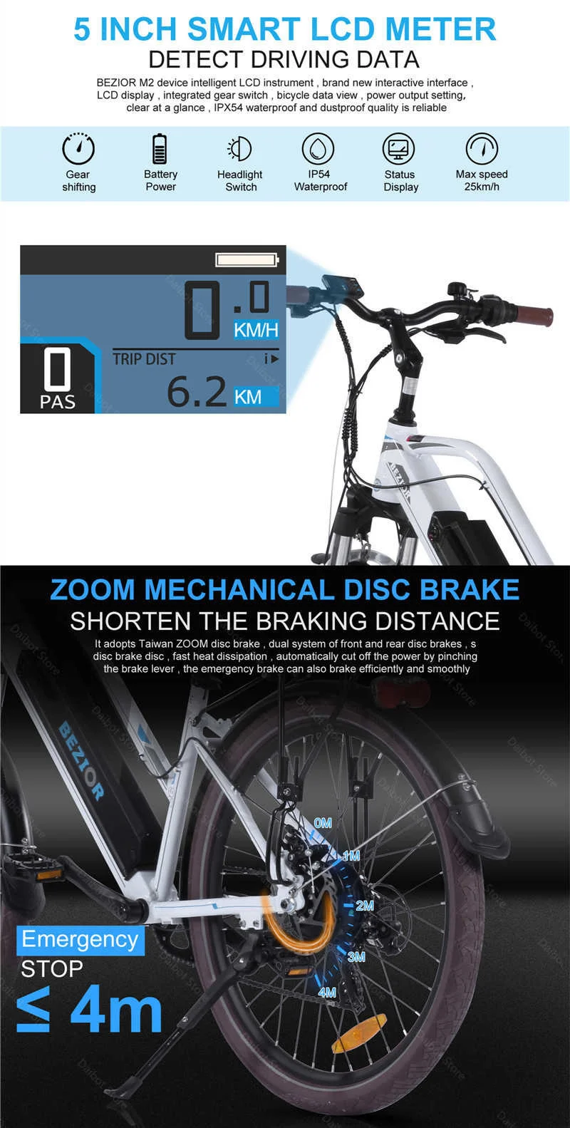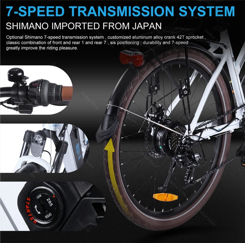 Особенности:Механический дисковый тормоз, система подвески передней вилки, умный ЖК-дисплей, светодиодная фара, съемный аккумулятор, два режима езды.