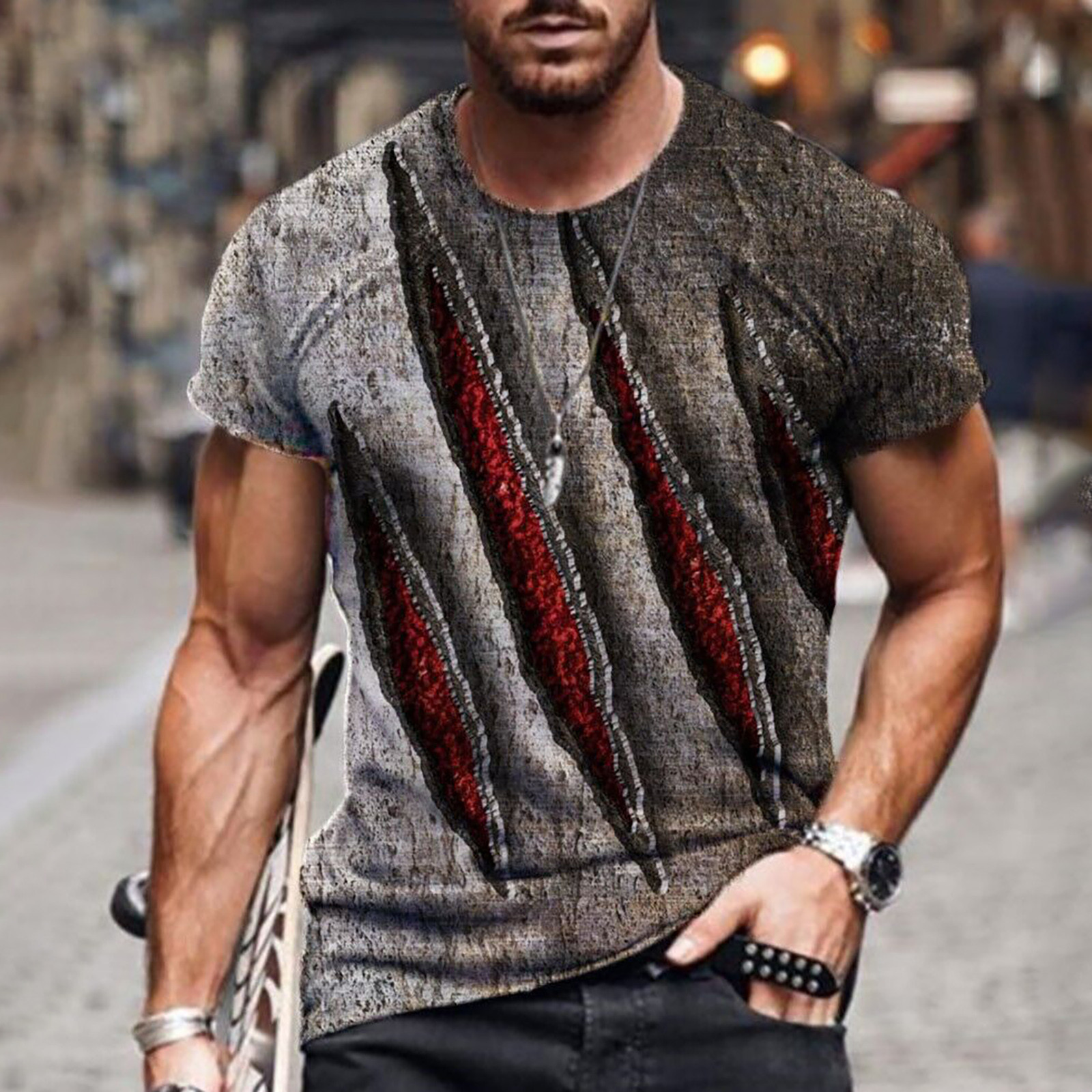 Мужская модная повседневная футболка с коротким рукавом и круглым вырезом
