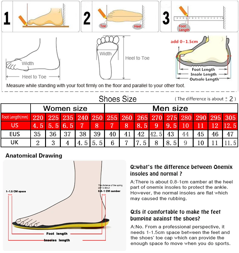 1) ПожалуйстаНе выбирайте размер обувиСогласно вашему Европейскому/американскому/британскому/российскому/БР размеру обуви;