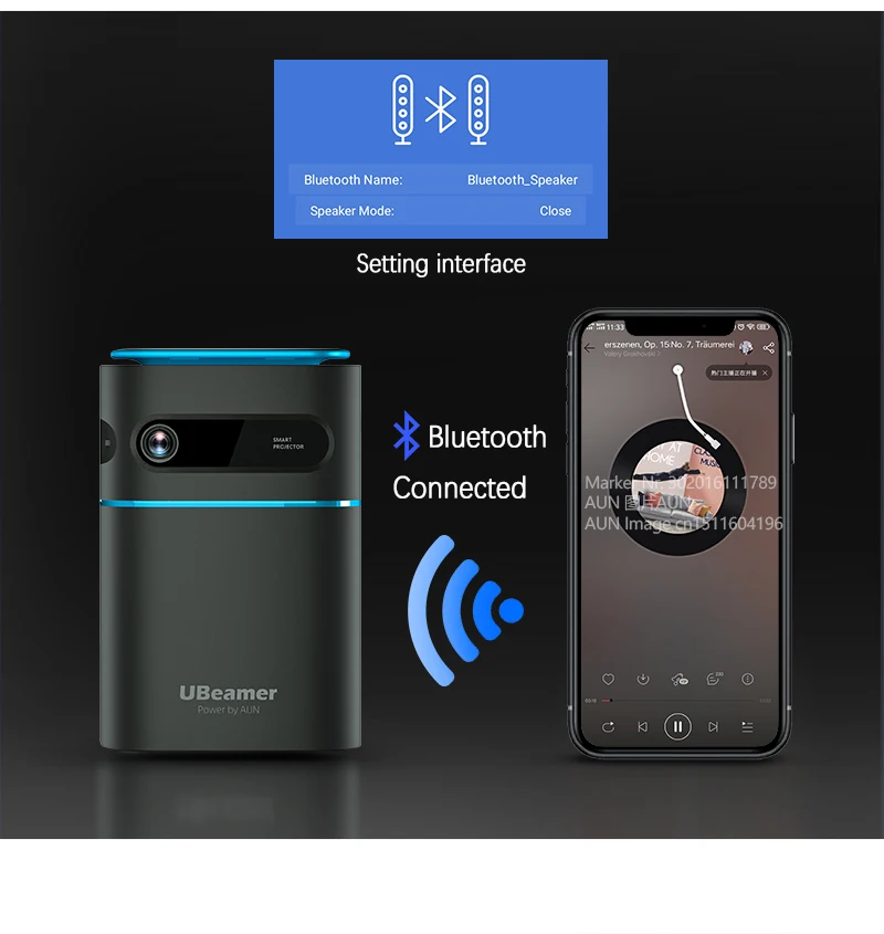 Ubeamer 1 Pro становится портативным bluetooth-динамиком с батарейным питанием, обеспечивая кристально чистую музыку, куда бы вы ни отправились. Мощный динамик заполняет комнату без проводов.