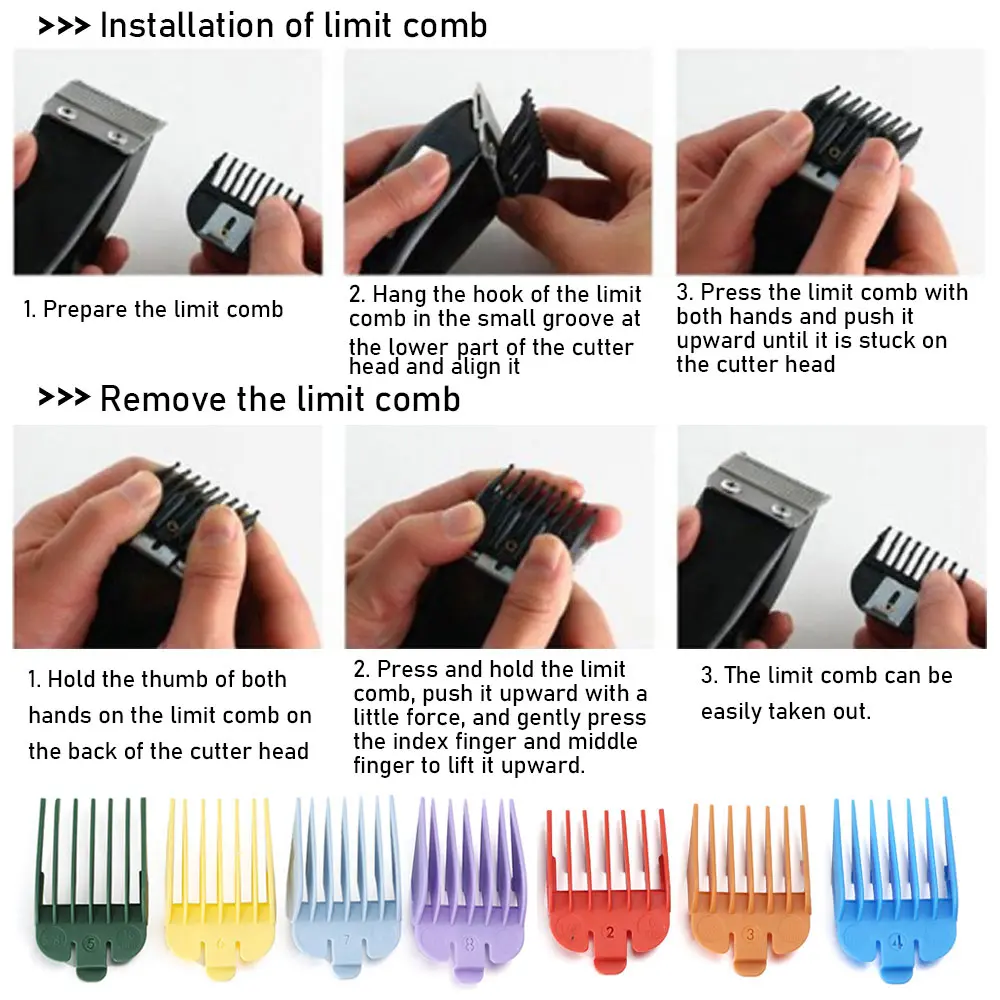 Отлично подходит для стильных зубцов-расчесок направляющих для стрижки имеют круглую форму, не нужно беспокоиться о ударе кожи головы. Гребни для стрижки имеют 8 различных длин резки с высокой строгой, вы можете закрепить различную длину ваших волос и создать свою прическу на основе ваших собственных предпочтений.