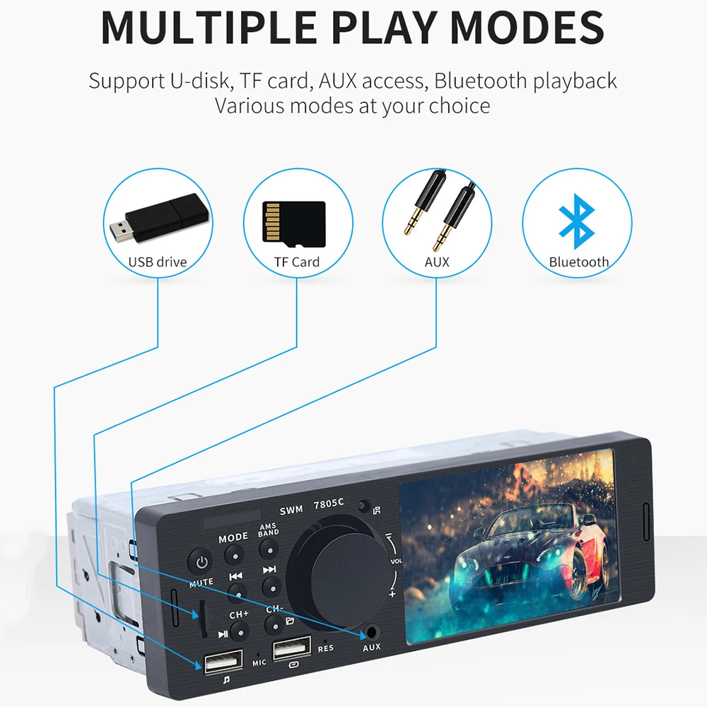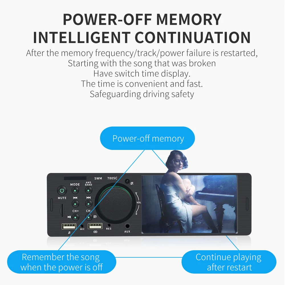 4 формата воспроизведения: Поддержка Bluetooth музыки и голосового вещания, воспроизведение u-диска, воспроизведение tf-карт, воспроизведение AUX