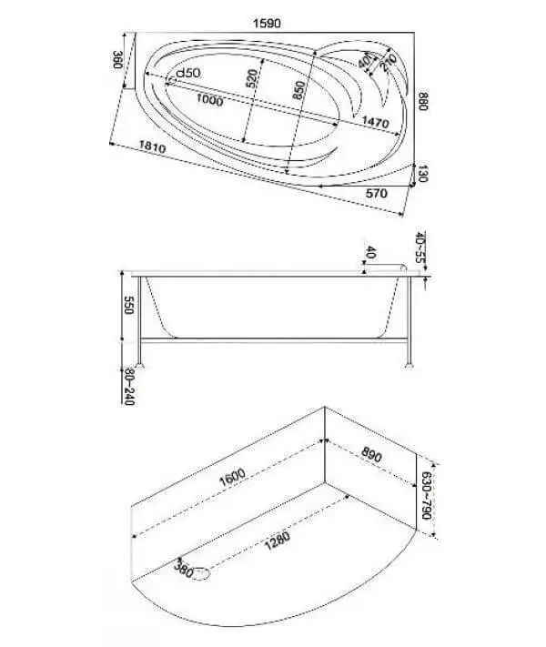 Для удобства ванна оборудована небольшим подголовником и сиденьем. На широкие борта можно ставить косметические средства и принадлежности, если по близости нет полки. В комплекте предусмотрен металлический каркас с регулируемыми по высоте ножками.