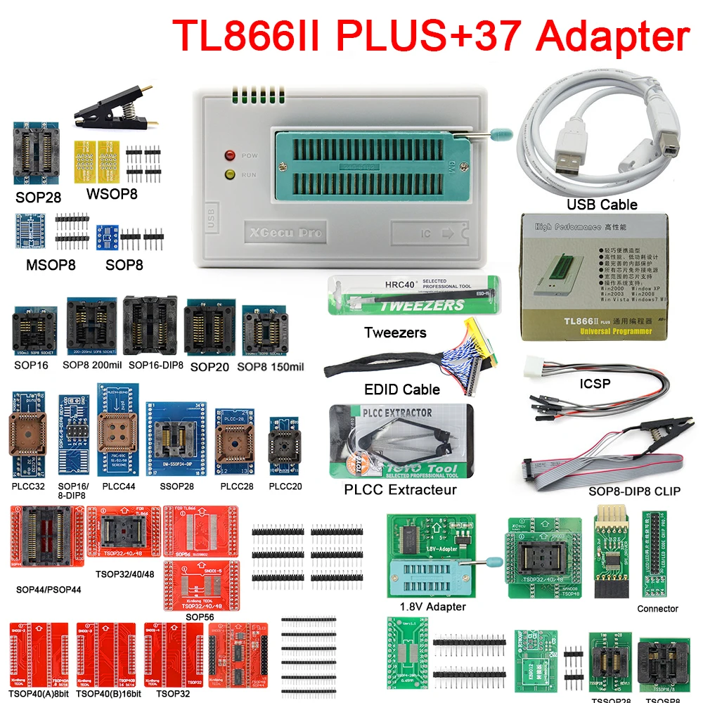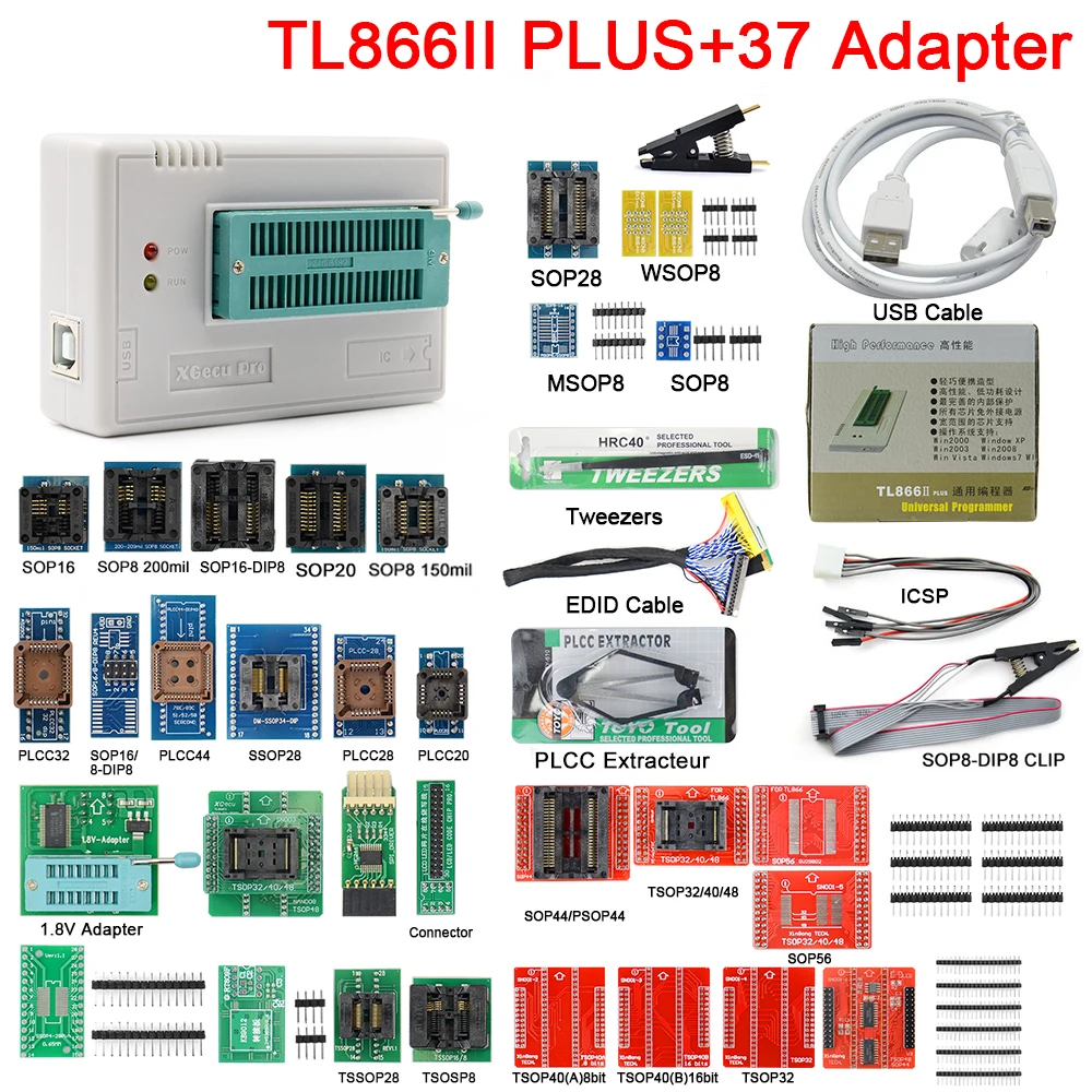 Подлинное Новое поступление TL866II Plus Универсальный Minipro Bios программатор + 37 элементов с NAND адаптером TL866 PIC Smart Calculator