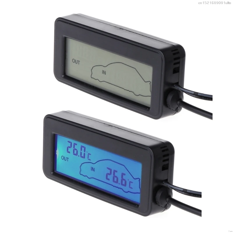 Измеряет и отображает температуру (Цельсия) в вашем автомобиле, а также температуру снаружи