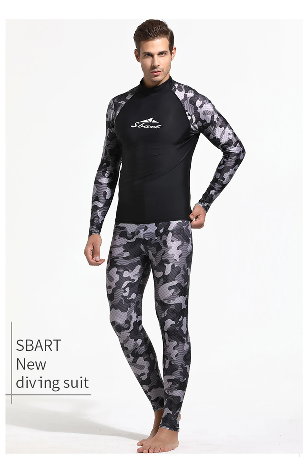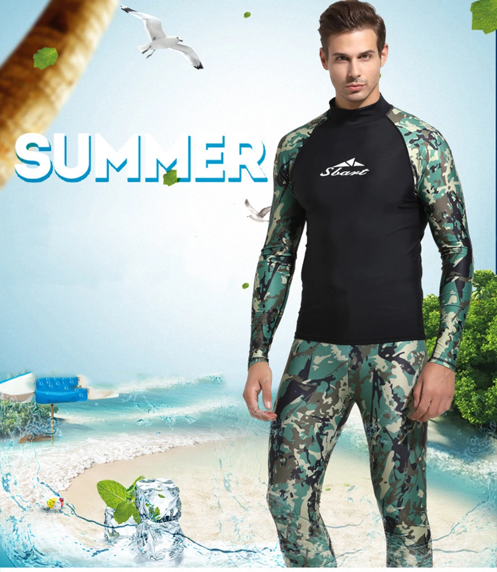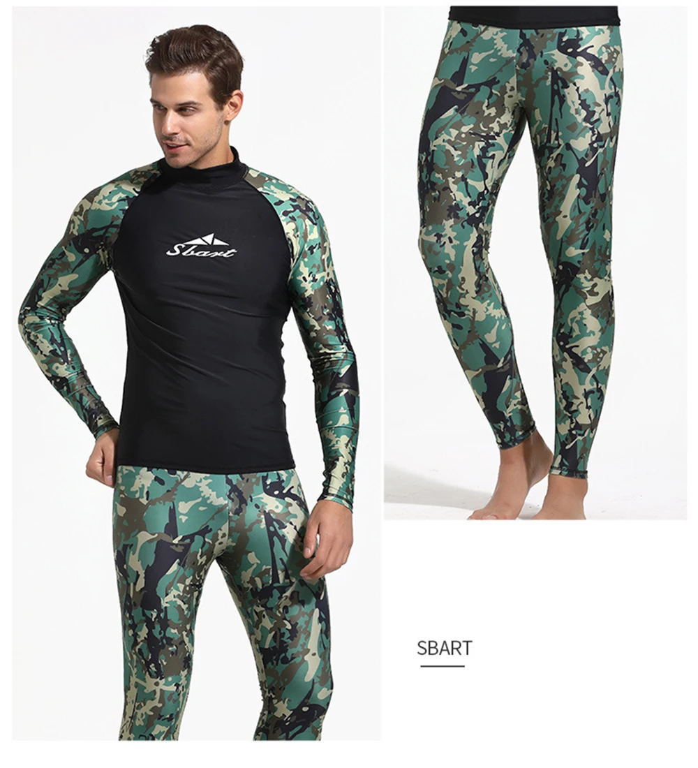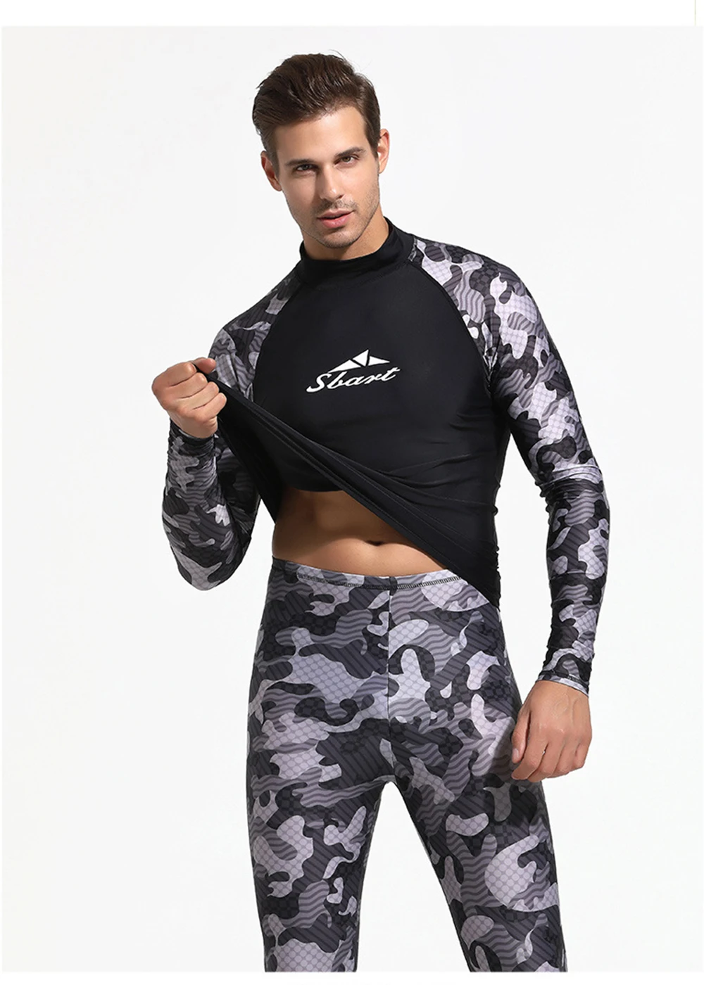 Мужской Камуфляжный спасательный жилет SBART с длинным рукавом, купальник UPF 50 +, верхняя и нижняя часть, базовая одежда для дайвинга, серфинга, плавания, солнцезащитного крема