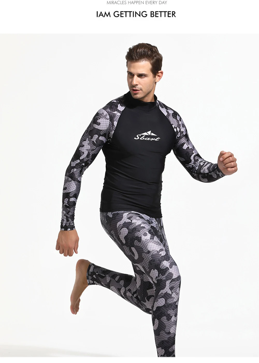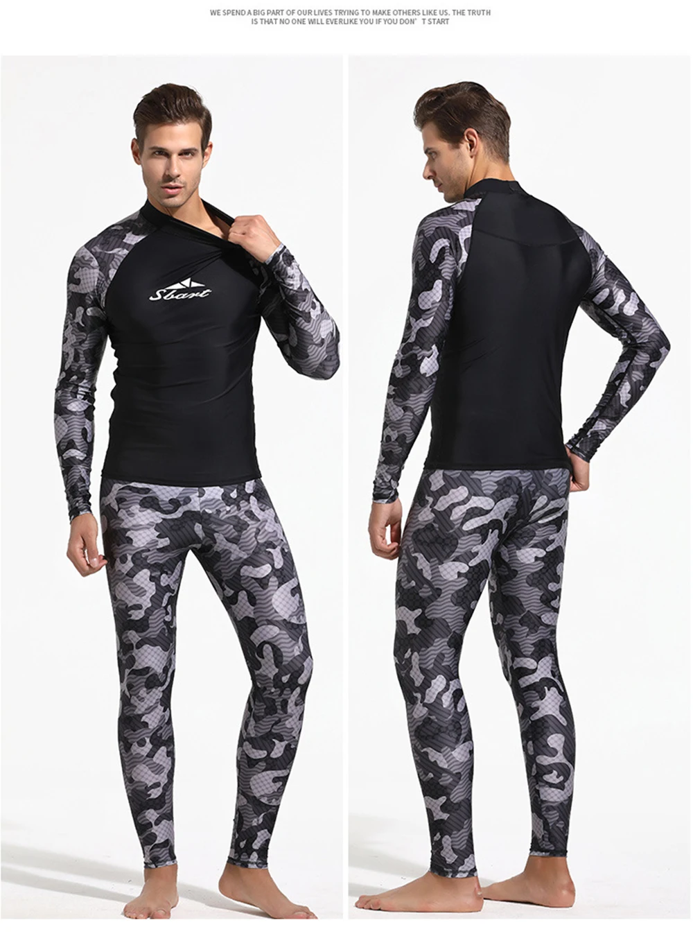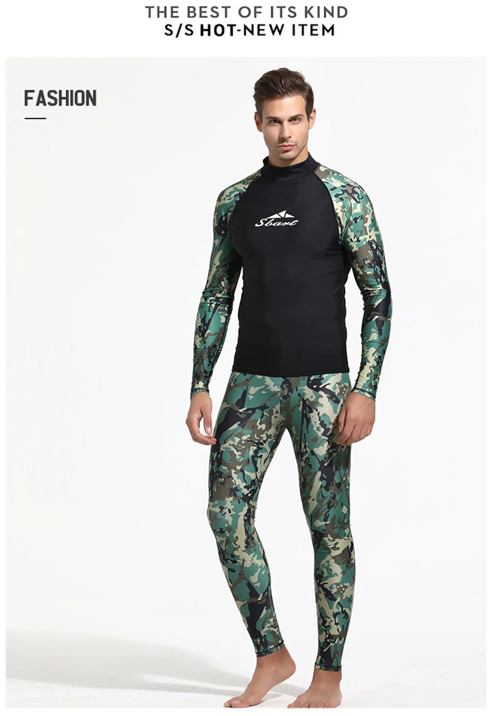 Мужской Камуфляжный спасательный жилет SBART с длинным рукавом, купальник UPF 50 +, верхняя и нижняя часть, базовая одежда для дайвинга, серфинга, плавания, солнцезащитного крема
