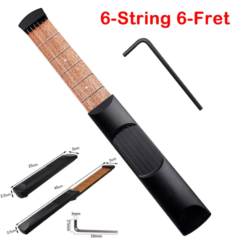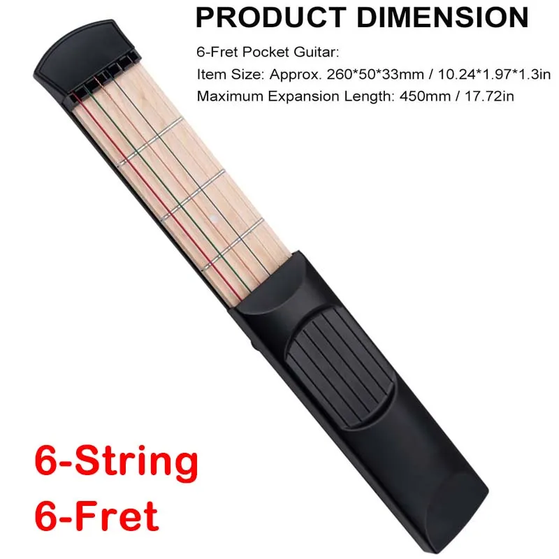 Pocket Guitar:6-fret pocket guitar, a handy tool designed for guitar beginners, you can carry it around when you are traveling and practice fingering anytime anywhere.