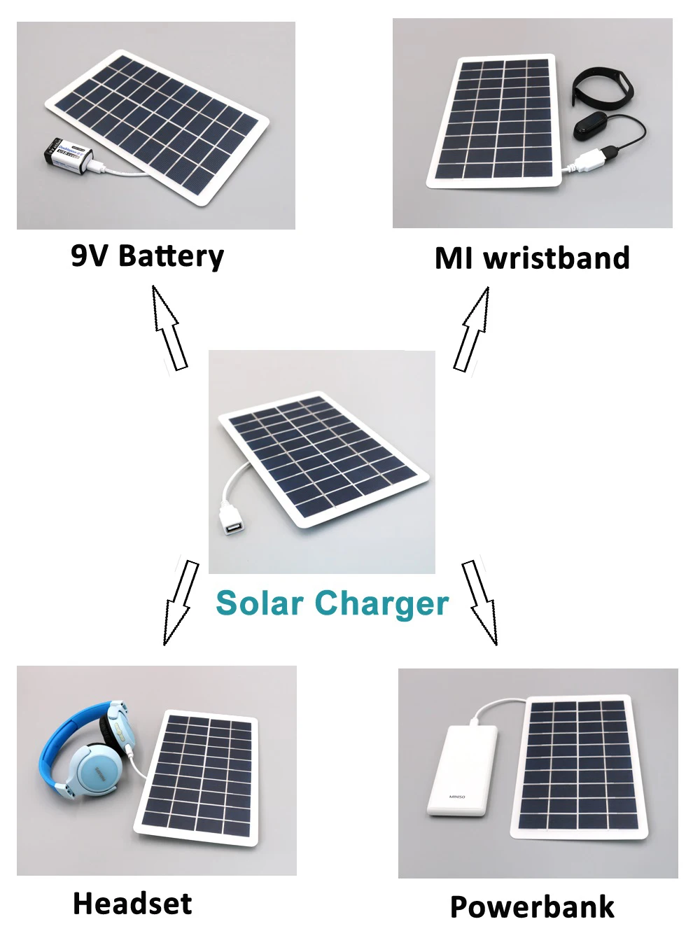 5 в солнечные панели используется для наружной аварийной зарядки, а мощные солнечные панели могут использоваться вместо адаптеров переменного тока. Этот продукт может использоваться в bluetooth-колонках, автомобильных вентиляторах, наушниках Bluetooth, банках питания, перезаряжаемых фонариках и т. д. Только если зарядный порт 5 В может быть использован, его можно заменить солнечной панелью 5 В.