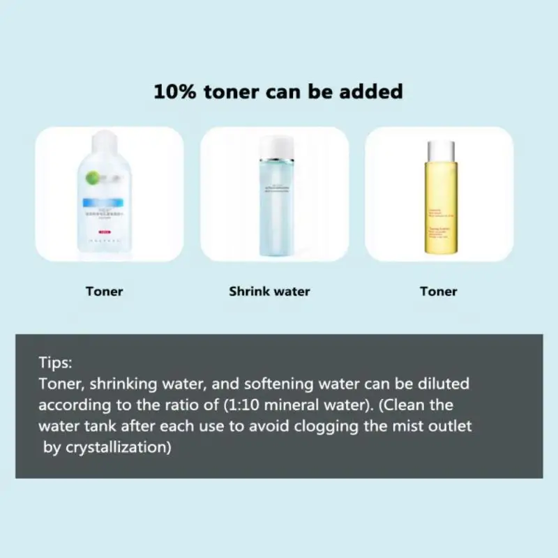 2. Технология высокочастотных колебаний, распыление воды в Водный туман и умеренное восполнение воды в течение 6 минут, чтобы сохранить кожу в хорошем состоянии