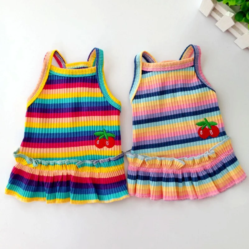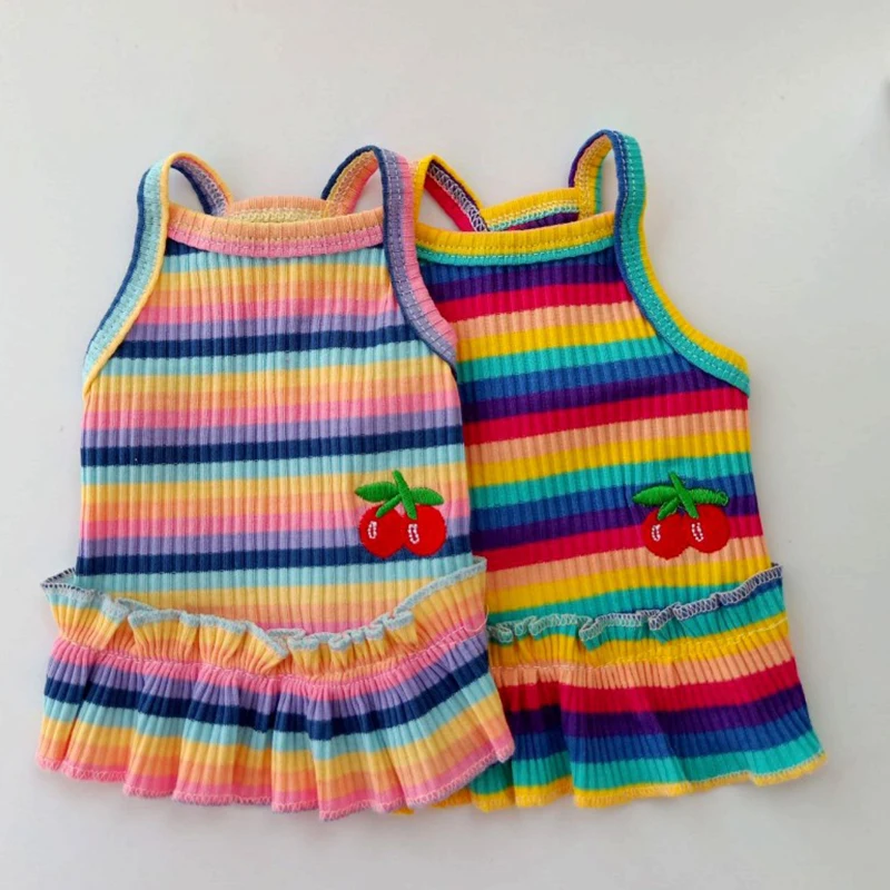 Цветная Полосатая юбка принцессы с вишенками из хлопка, из мягкой ткани и приятного на ощупь.