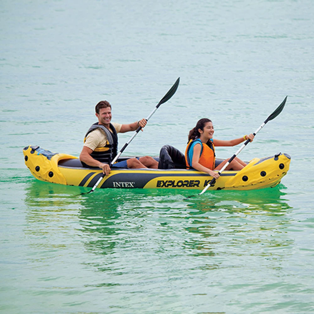 2 человек надувная лодка спорт каяк каноэ надувная лодка из ПВХ плот насоса подушки сиденья Вышивка крестом пол прослойка Профессиональный водных видов спорта и kayak