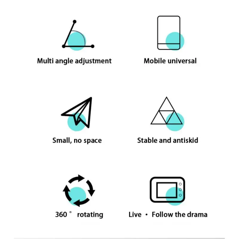 【Многоугольный】 с поворотным держателем для телефона вы можете выбрать горизонтальный или вертикальный режим, чтобы получить лучший угол, который вам нужен.