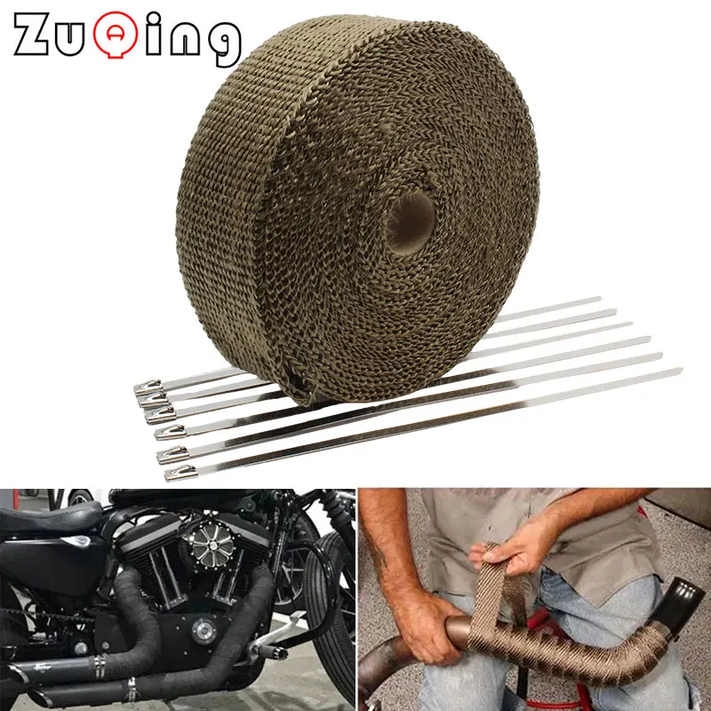 5cm*5M Exhaust Heat Wrap Thermal Tape Fiberglass Heat Wrap Manifold Insulation Roll Resistant with Stainless Ties