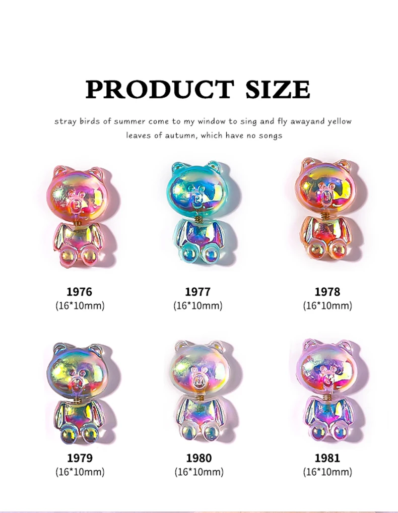 1 шт., Аврора, мультяшный медведь, украшения для ногтей, Misscheering, фантомный цвет, 3D Животные, аксессуары для ногтей, голографический УФ-Гель-лак, сделай сам, маникюр, Deco