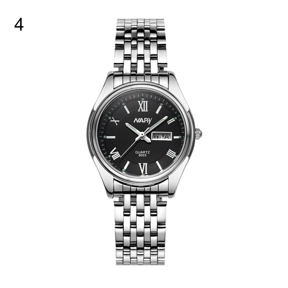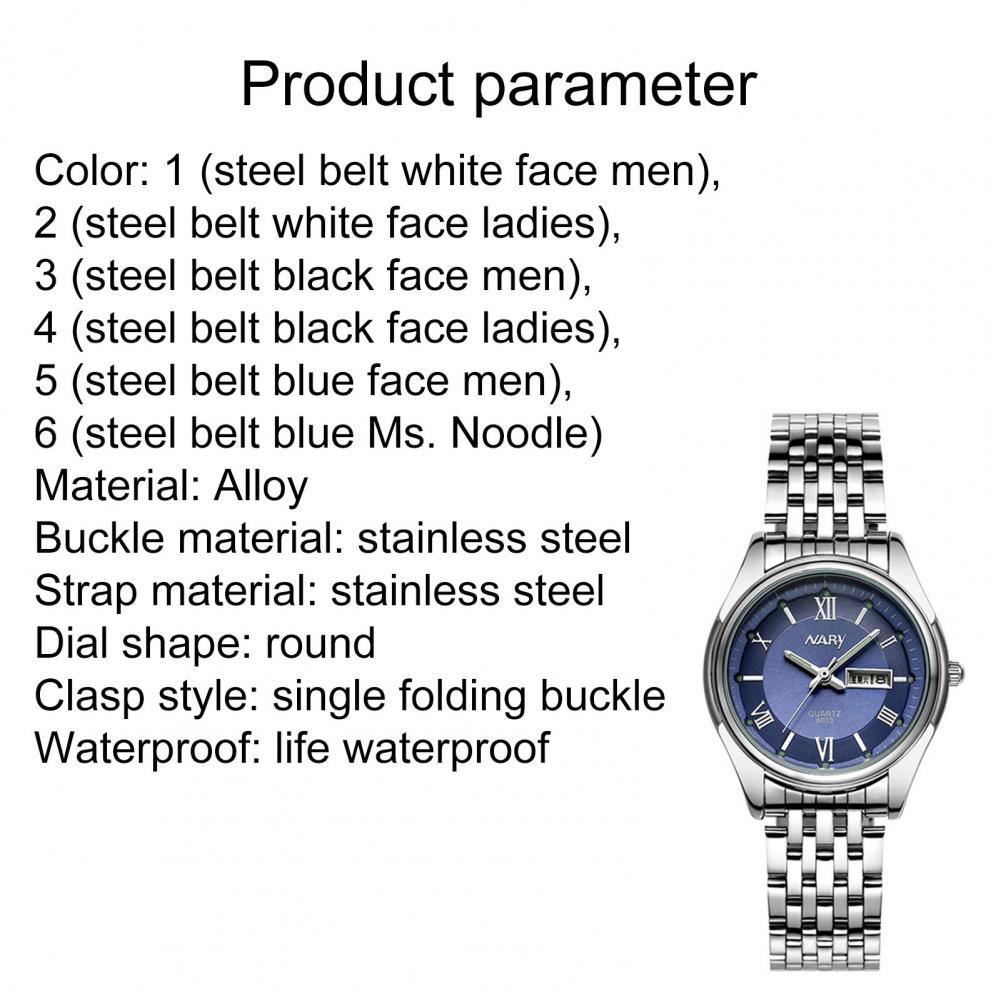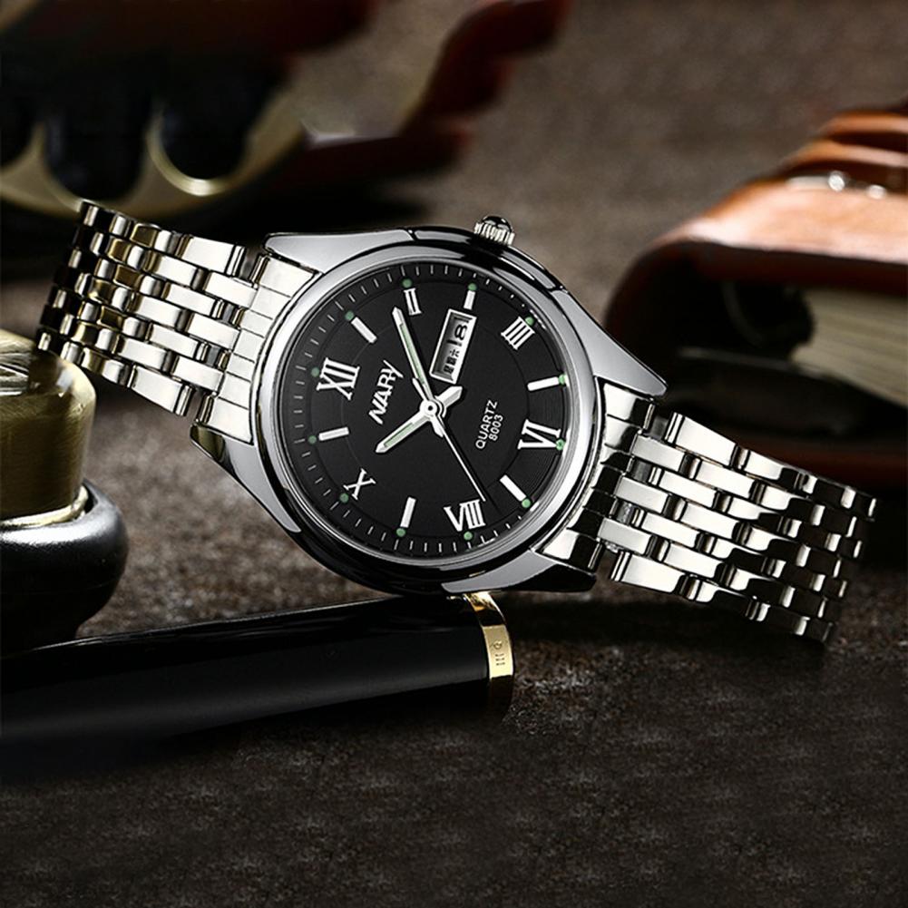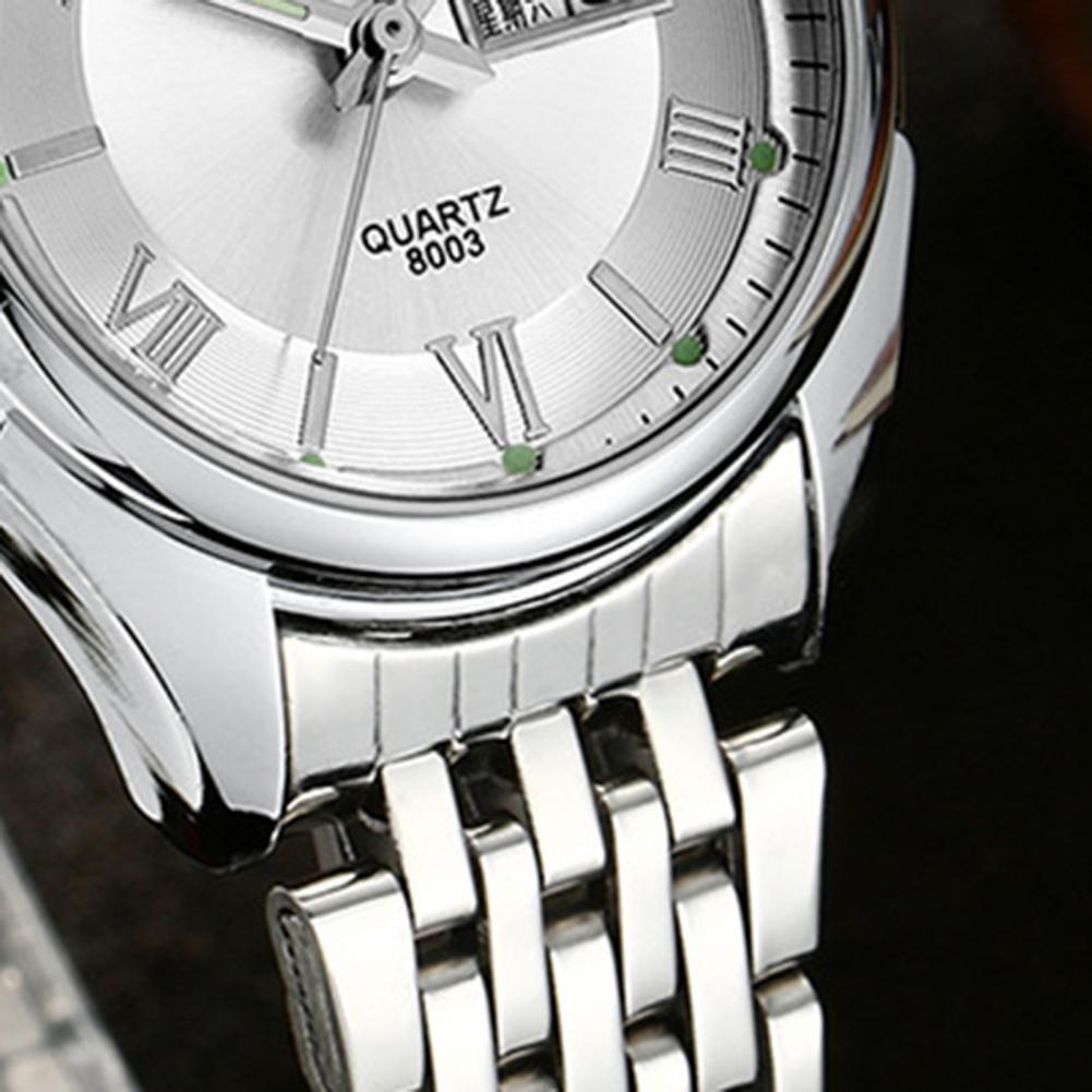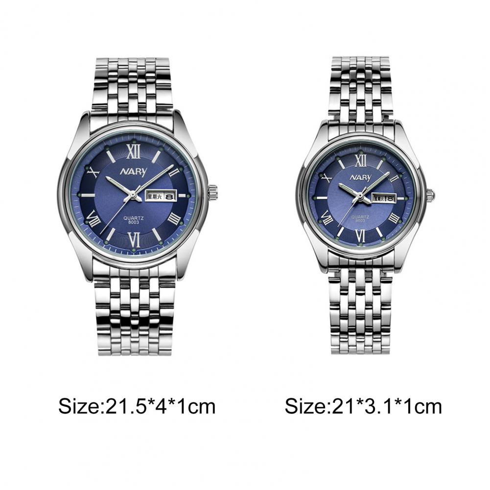 8003 пара часов Неделя Календарь простой нержавеющей стали водонепроницаемые кварцевые наручные часы для отпуска