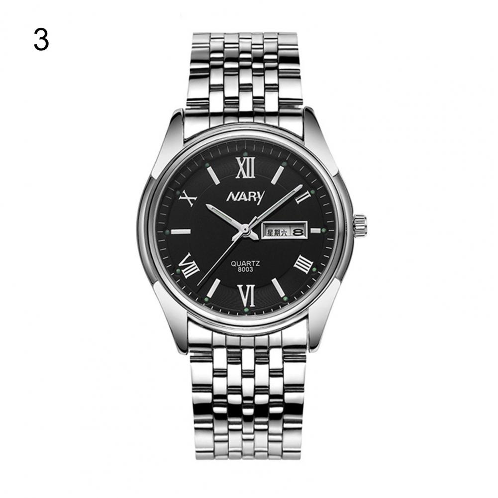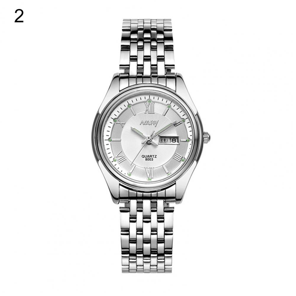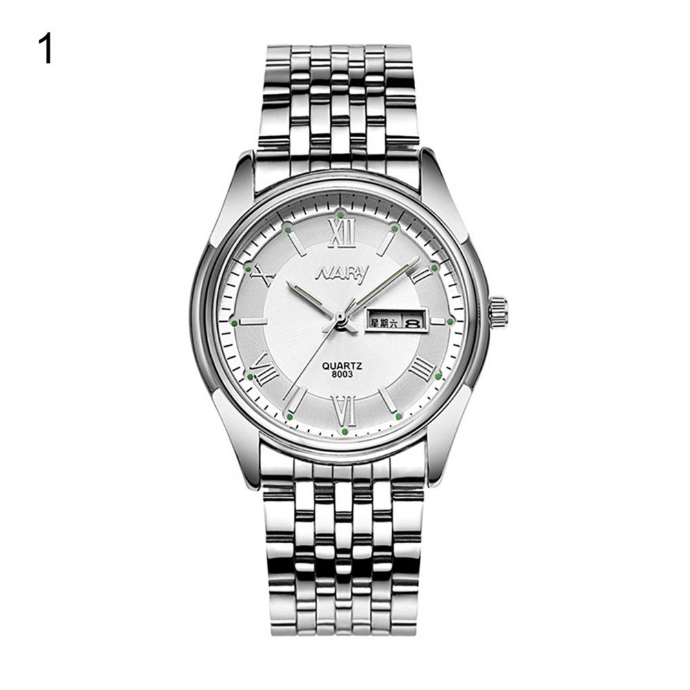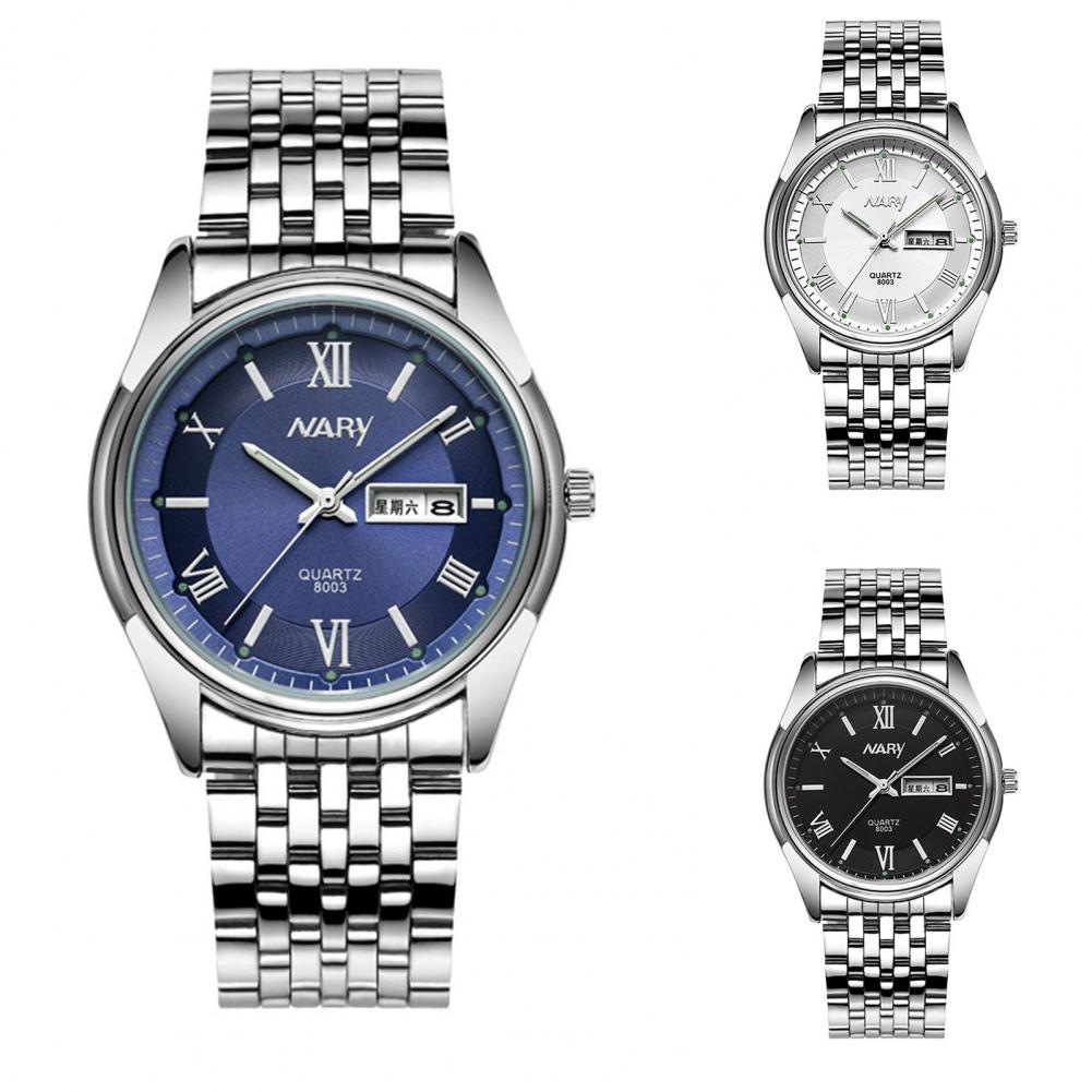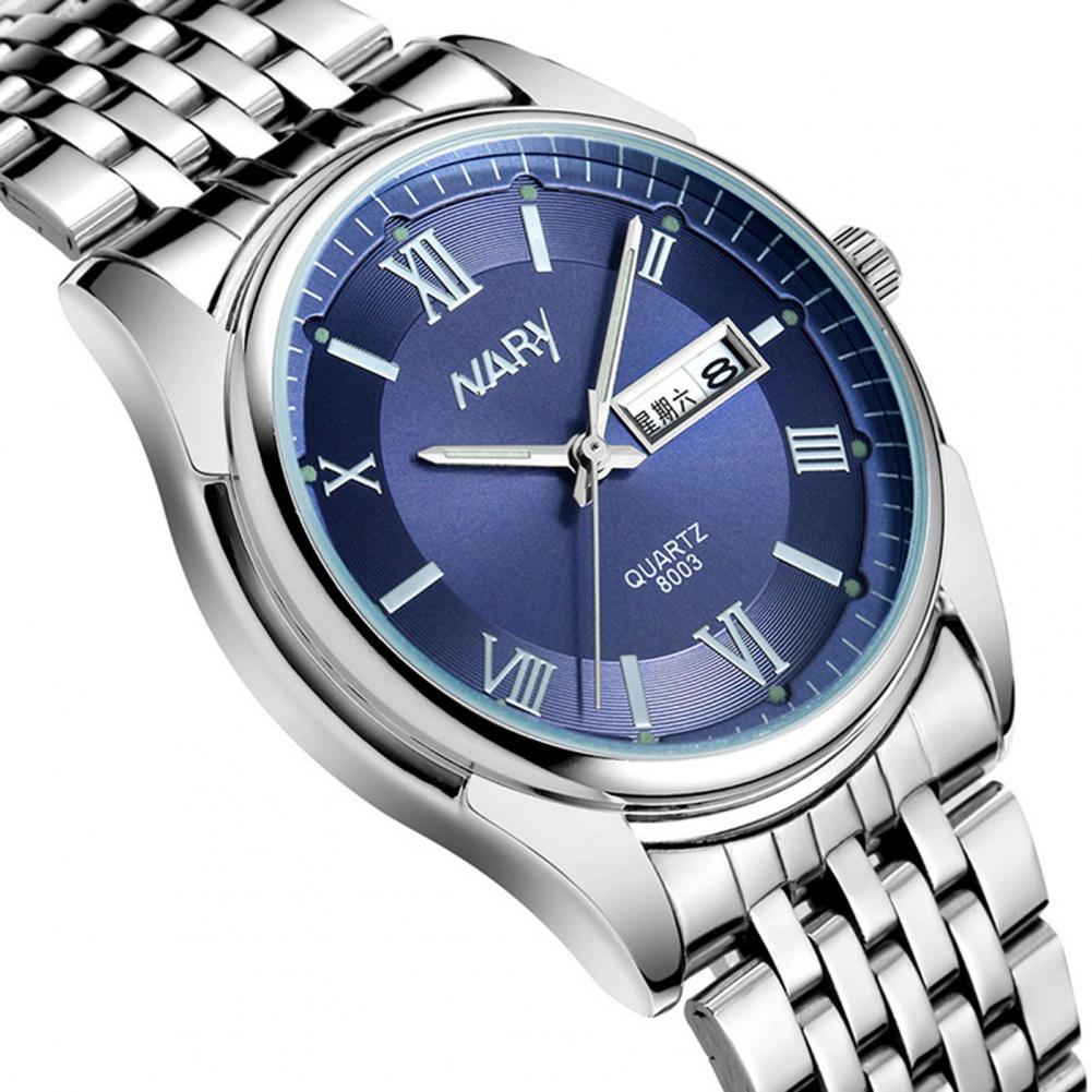 8003 пара часов Неделя Календарь простой нержавеющей стали водонепроницаемые кварцевые наручные часы для отпуска