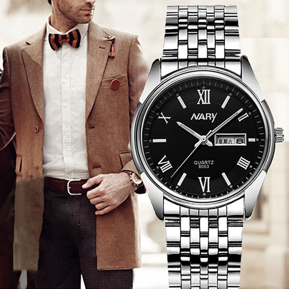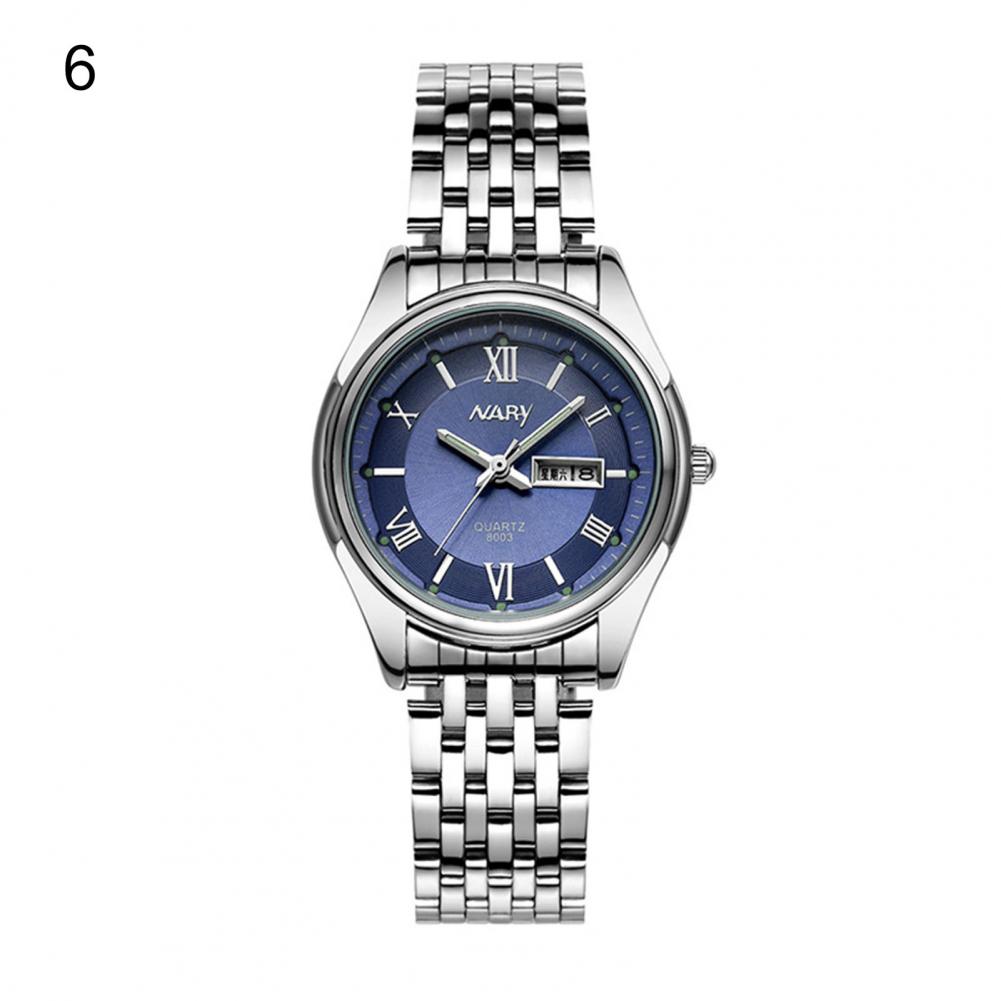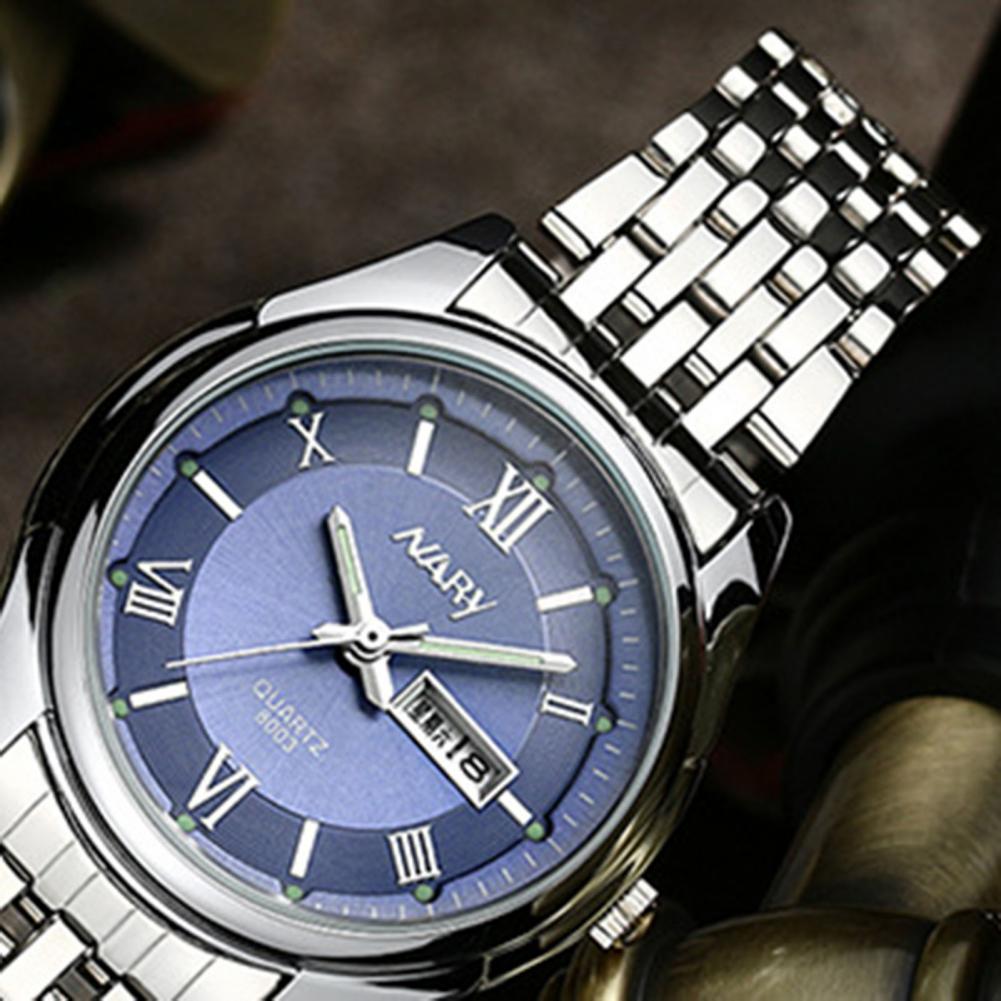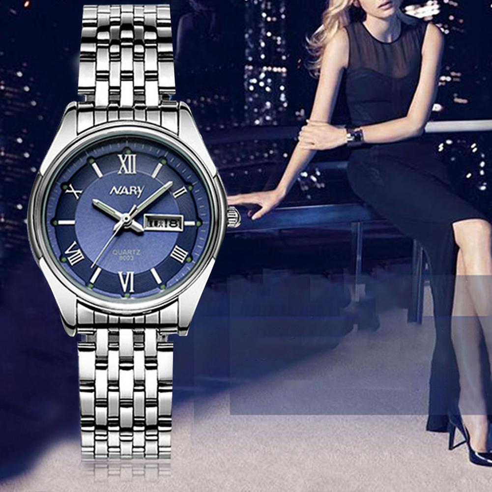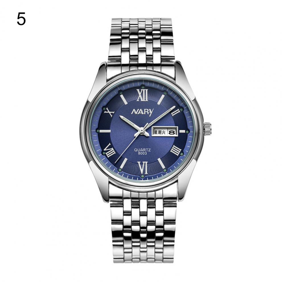 8003 пара часов Неделя Календарь простой нержавеющей стали водонепроницаемые кварцевые наручные часы для отпуска