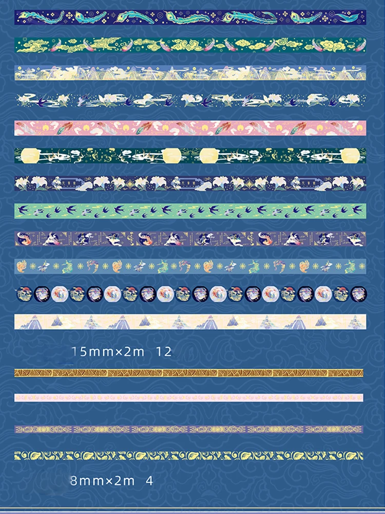 Размер ленты: 8 мм * 4 рулона + 15 мм * 12 рулонов + 30 мм * 4 рулона