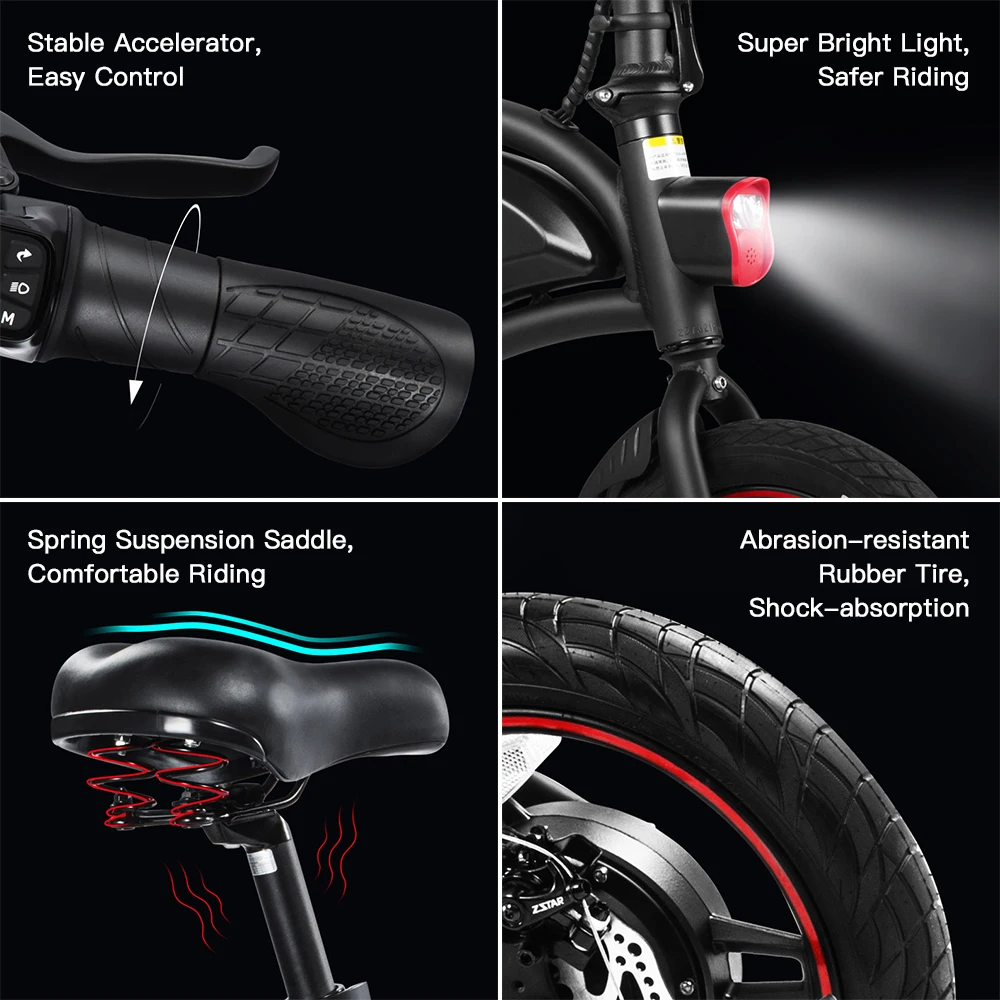 Этот электрический велосипед изготовлен из алюминиевого сплава, достаточно прочный, чтобы поддерживать максимальный вес пользователя 120 кг. Велосипед имеет максимальную скорость 25 км/ч, регулируемую высоту сиденья и складной дизайн, этот электрический велосипед очень удобен для путешествий.