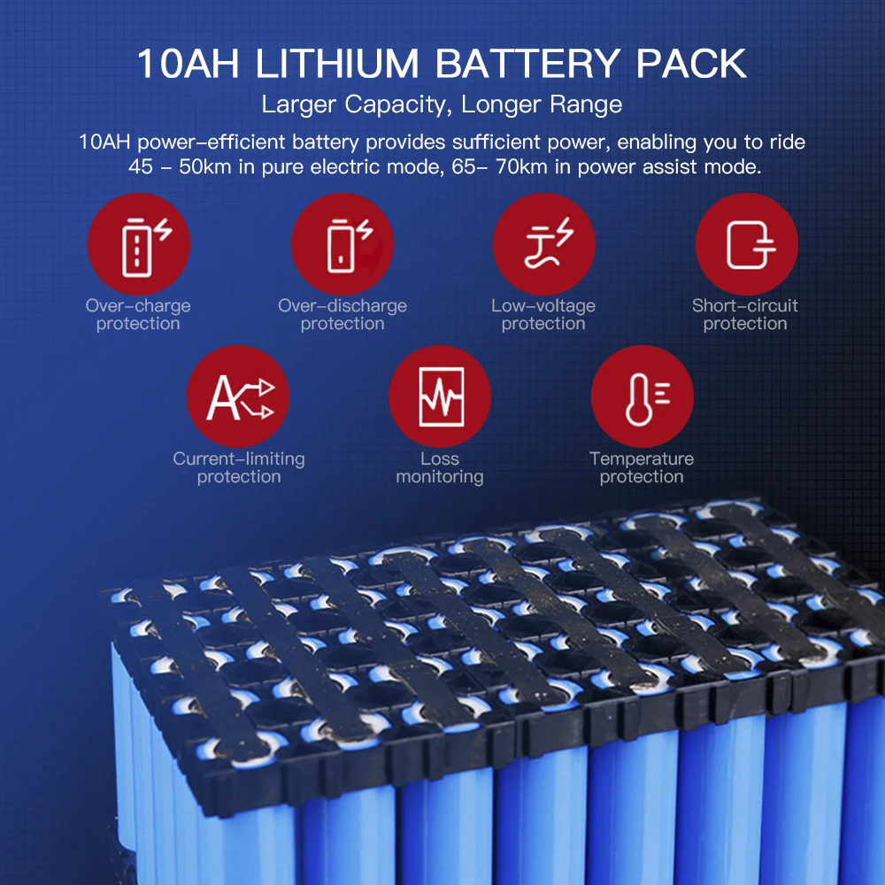 10AH литиевая батарея с Умной системой управления защищает аккумулятор для более длительного срока службы.